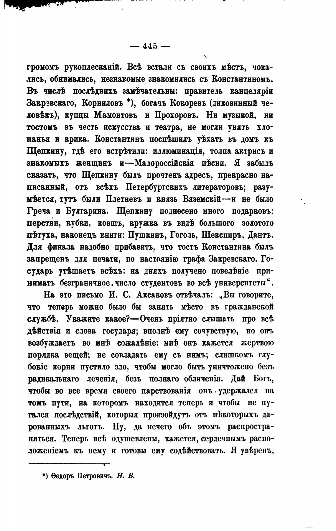 *) еедоръ Петровичъ. Н. Б.