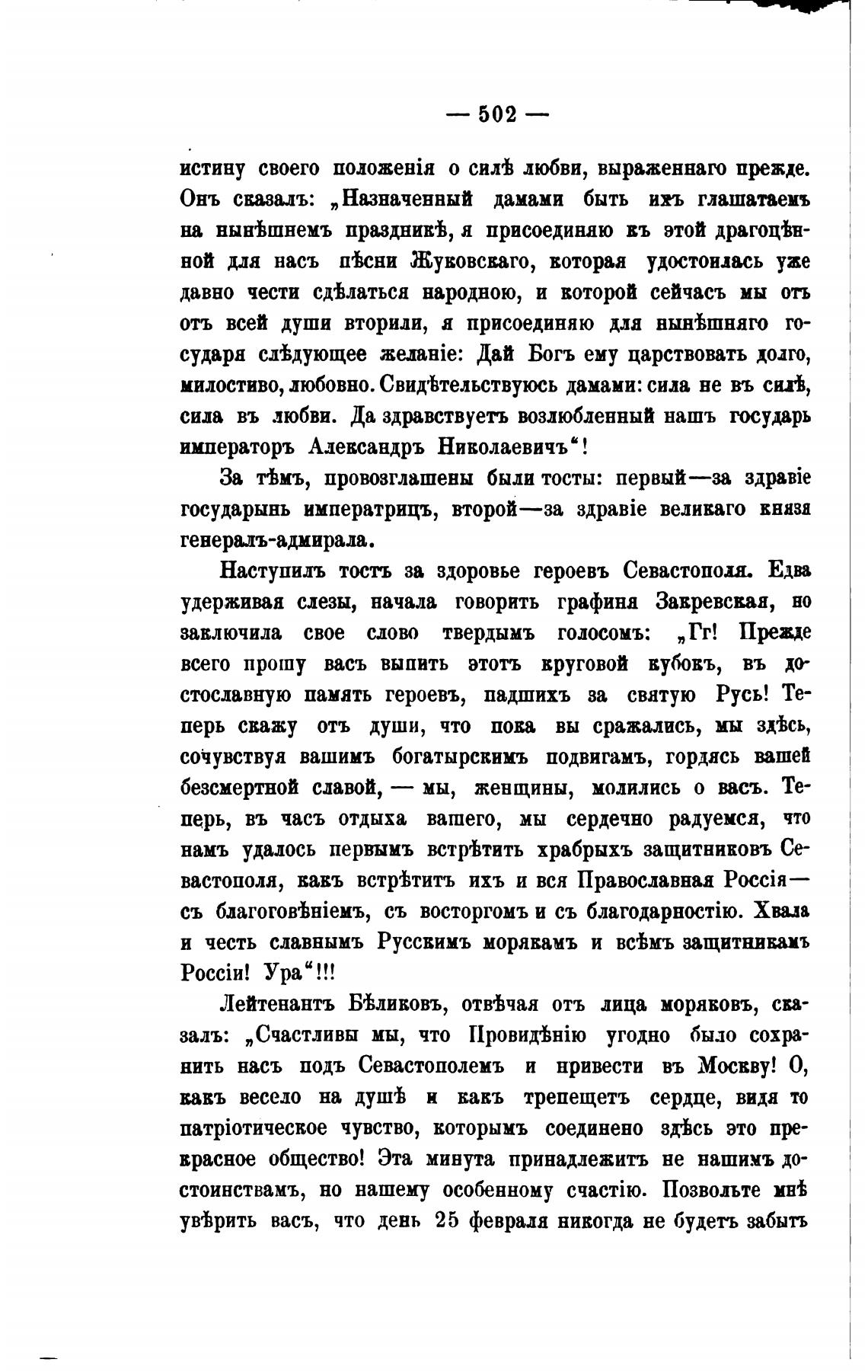 Наступидъ тость за здоровье героевъ Севастополя. Едва