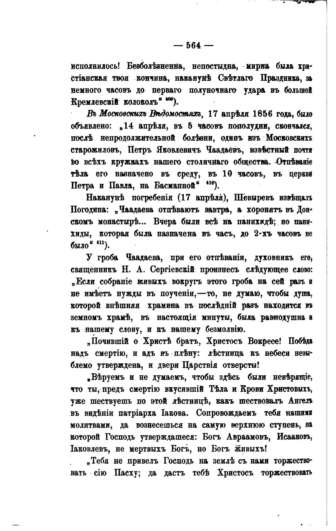Погодина: „ Чаадаева отшЬвають Ивтра, хоронатъ въ Дон•