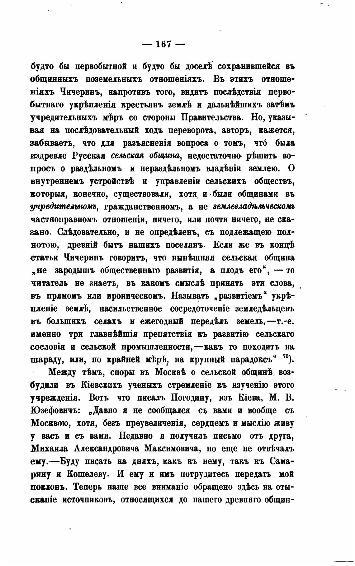 статьи Чичеринъ говорить, что нынеЬшняя сельская община