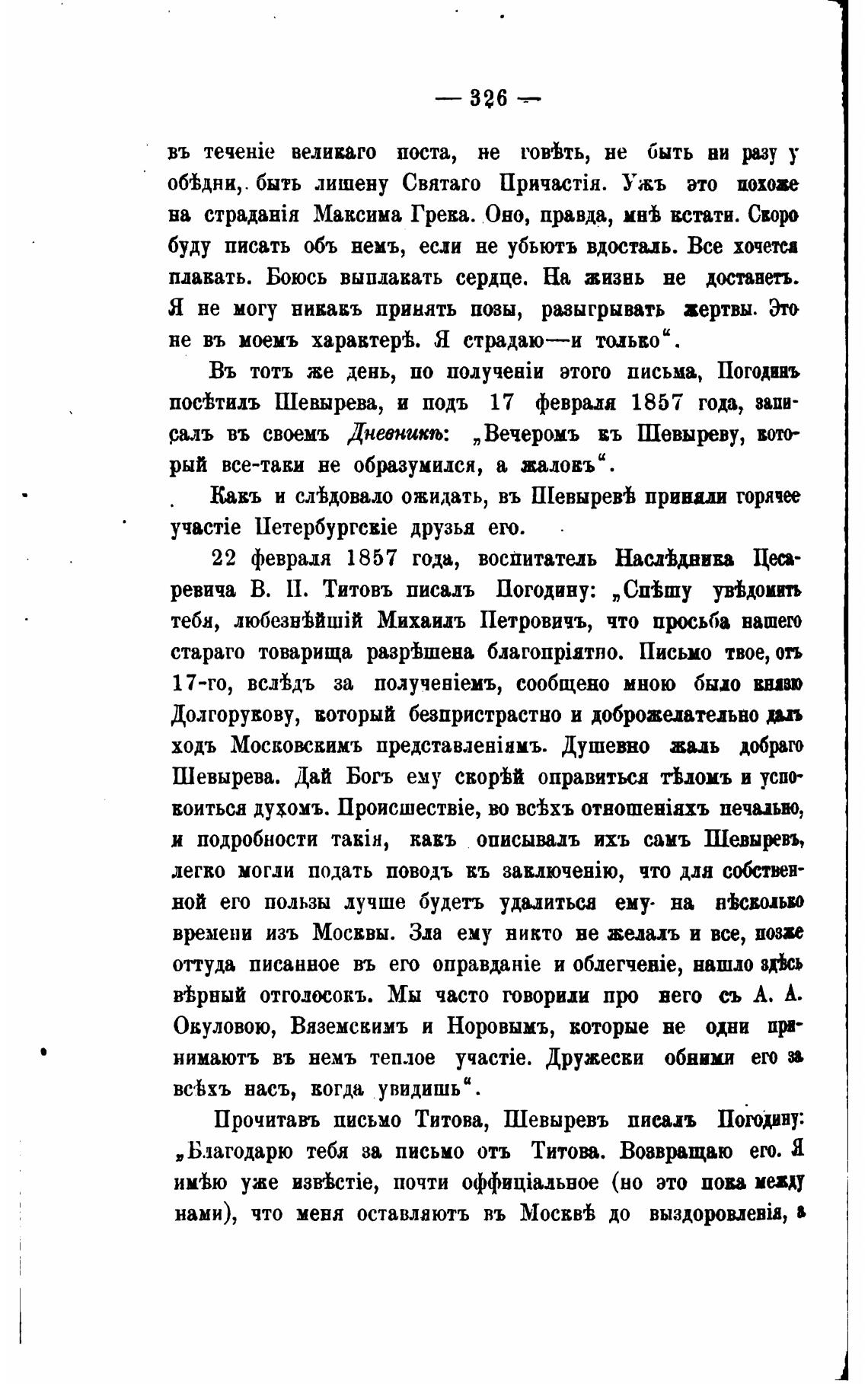 поувтидъ Шевырева, и подъ 17 февраля 1857 года, запи-