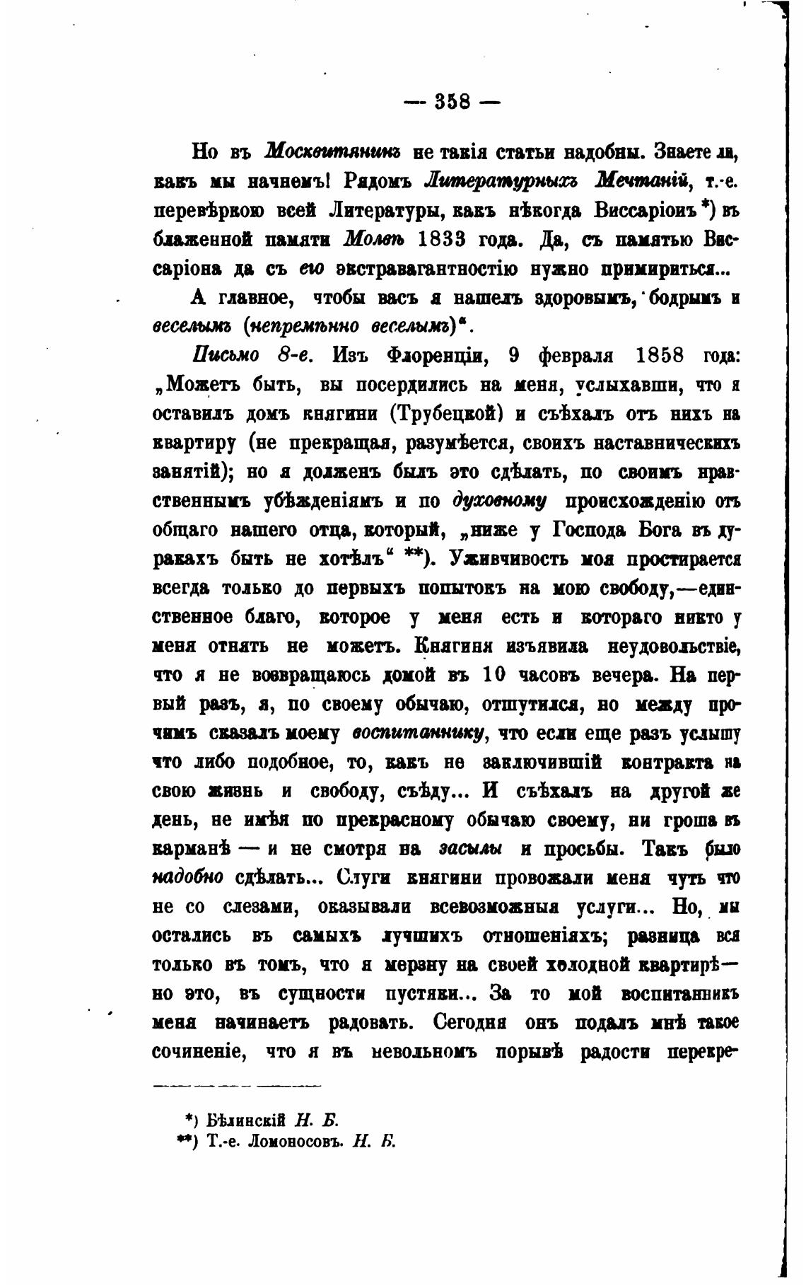 письмо 8-е. Изъ Флорти, 9 февраля 1858 года: