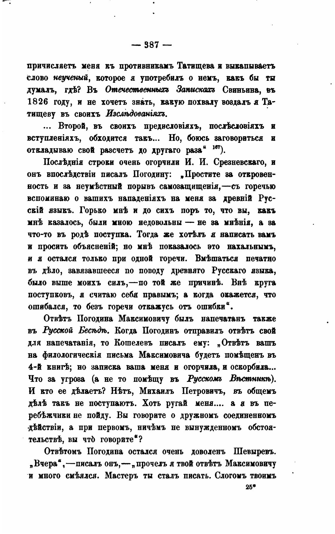 Отйтъ Погодина Максимовичу быль напечатанъ также
