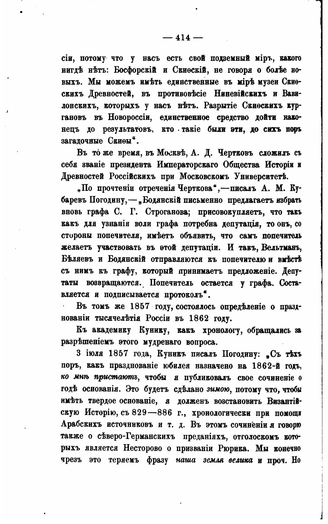 З 1857 года, Кунивъ писадъ Погодину: „Съ тЬхъ