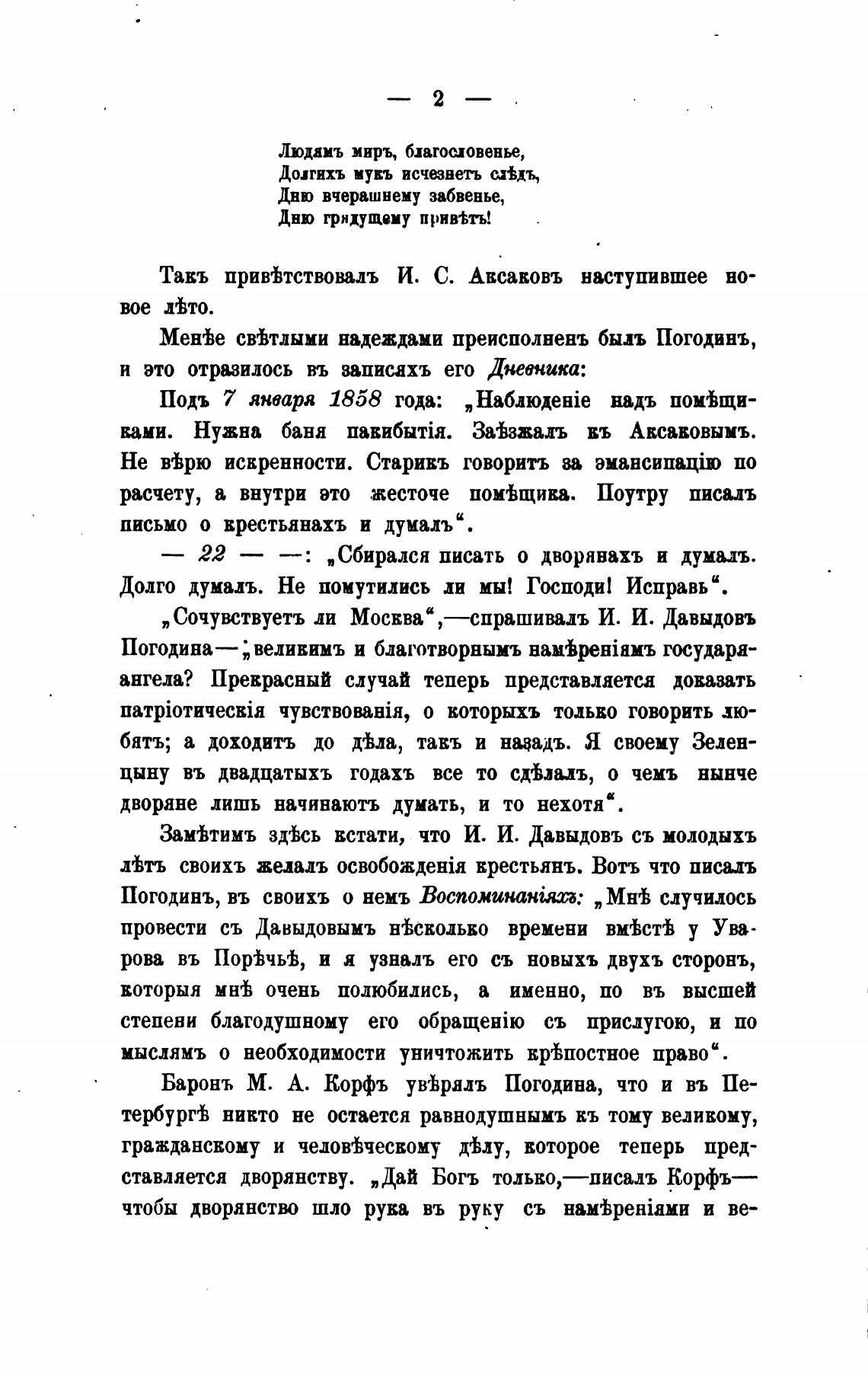 Баронъ М. А. Корфъ ув%рялъ Погодина, что и въ Пе-