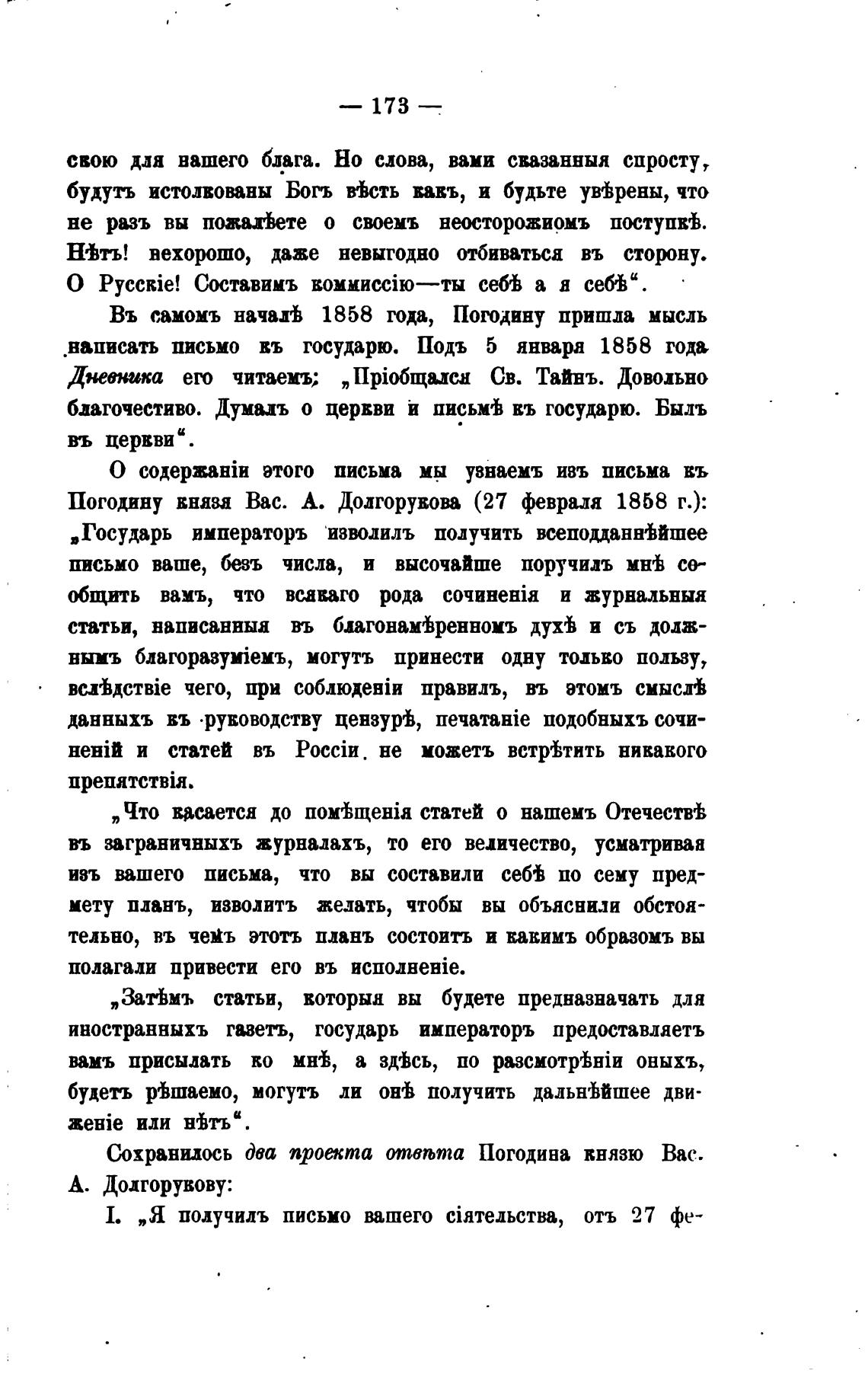 Погодину вняза Вас. А. Долгорукова (27 февраля 1858 г.):
