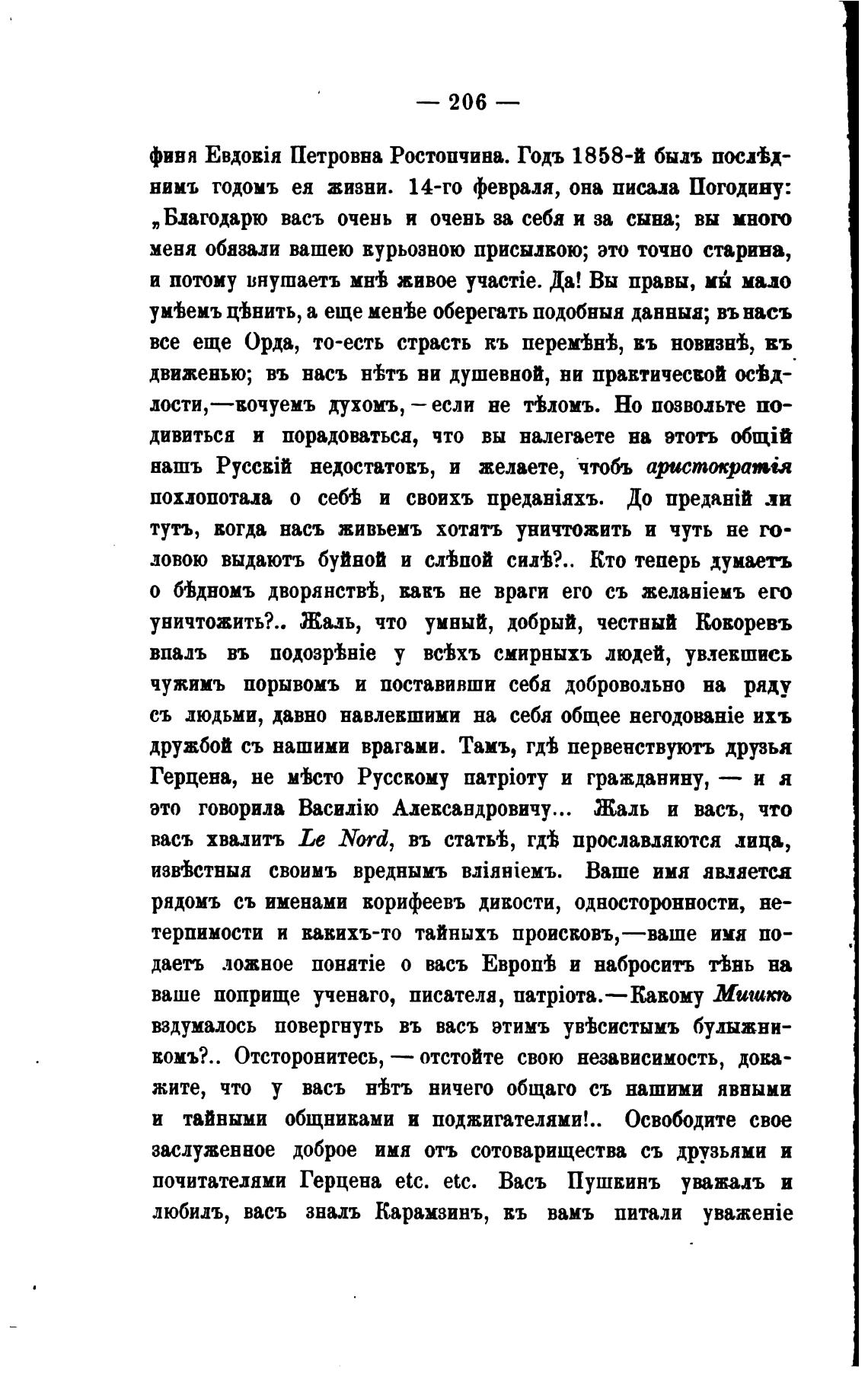 нииъ годомъ ея жизни. 14-го февраля, она писала Погодину: