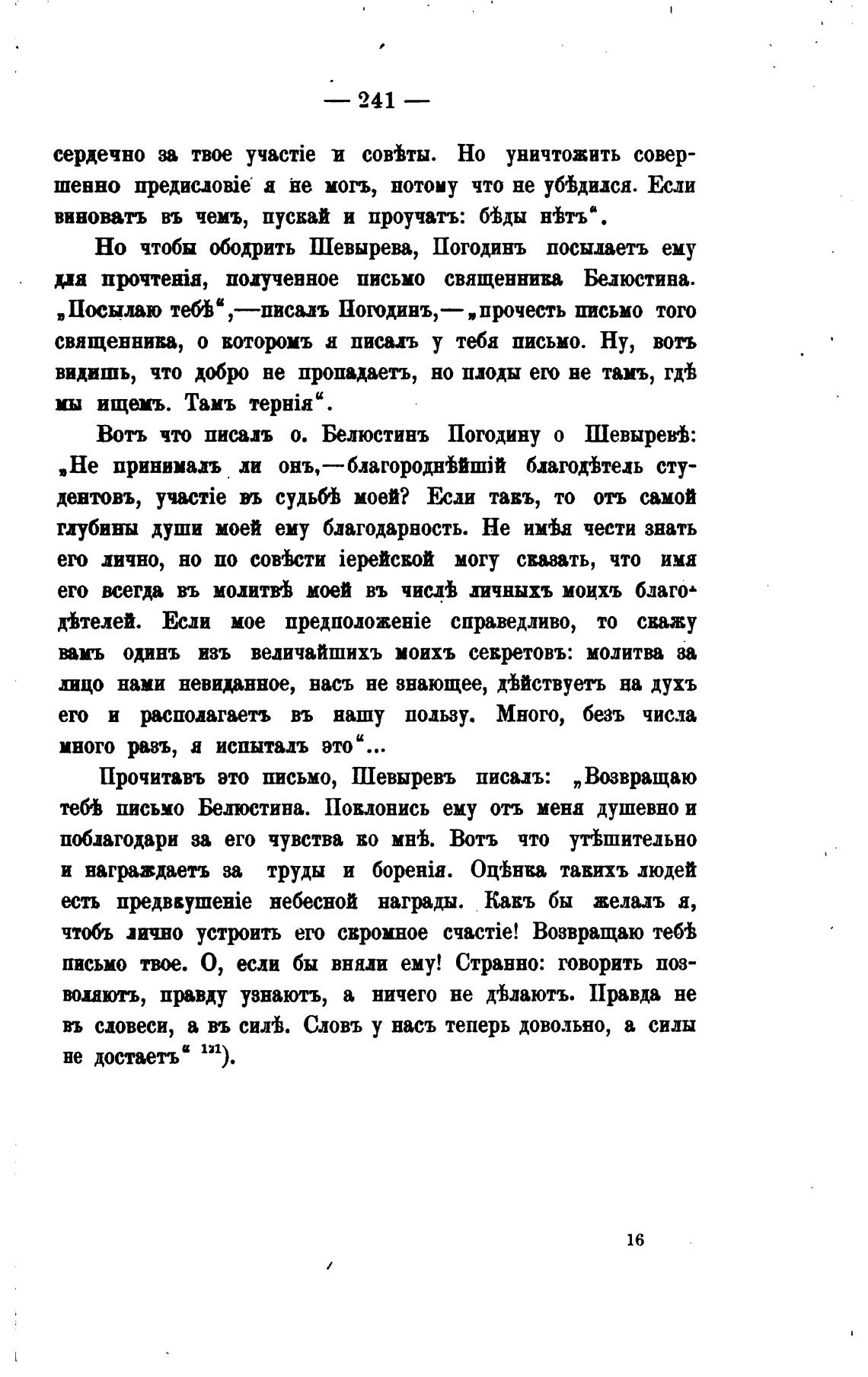 Вотъ что о. Белюстинъ Погодину о Шевырев•Ь: