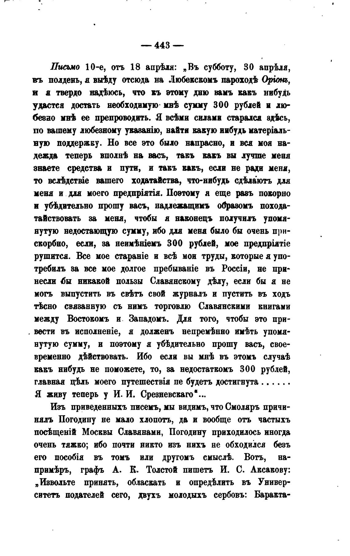 примВръ, трафь А. К. Толстой пишет•ъ И. С. Авсавову: