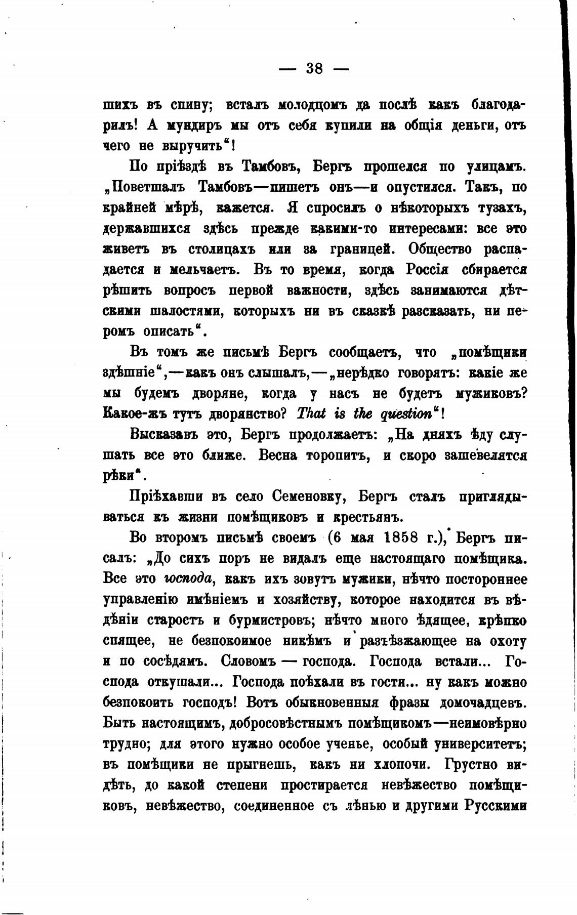 Во второмъ письмгЬ своемъ (6 мая 1858 г.), Бергъ пи-