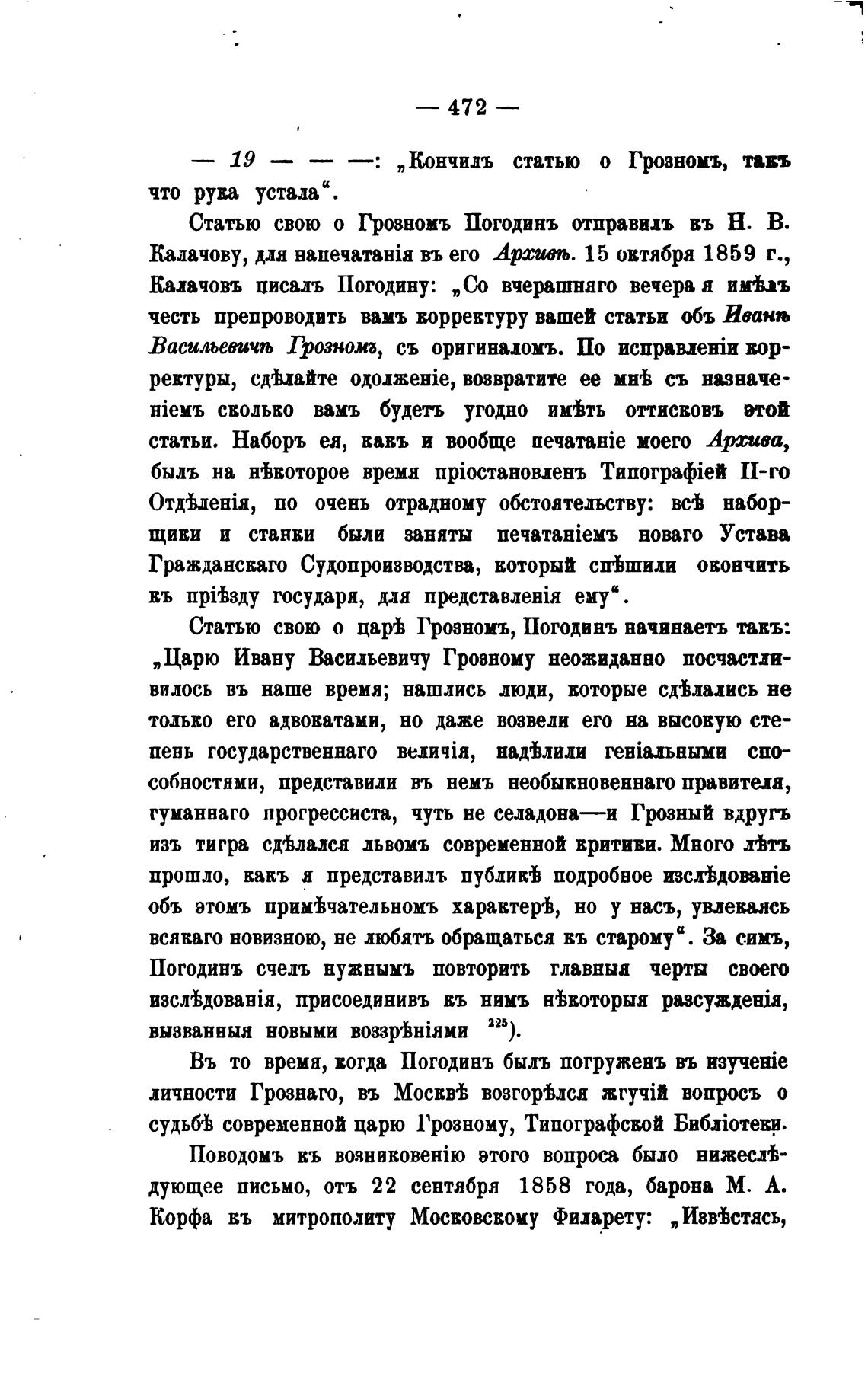 Статью свою о Грозномъ Погодинъ отправилъ въ Н. В.