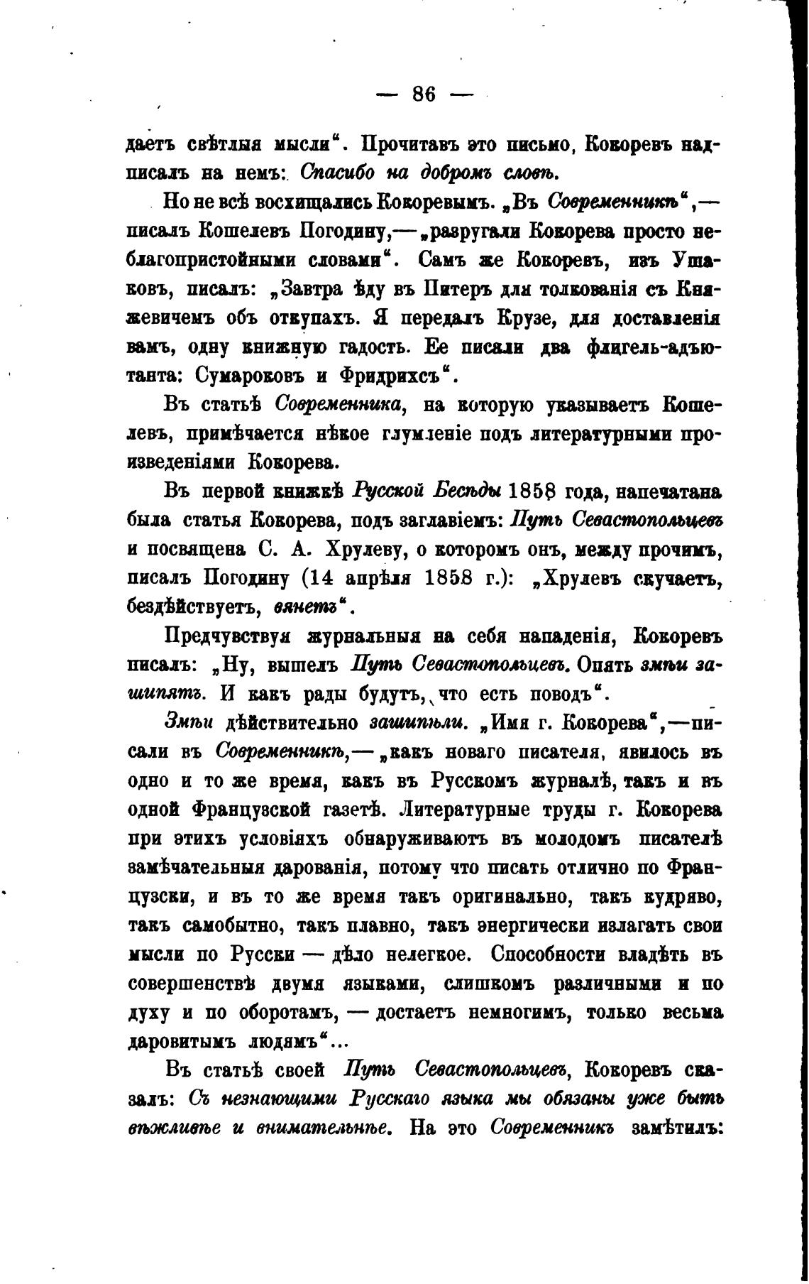 Въ статыЬ своей Путь Севастопольцеп, Коворевъ сва-