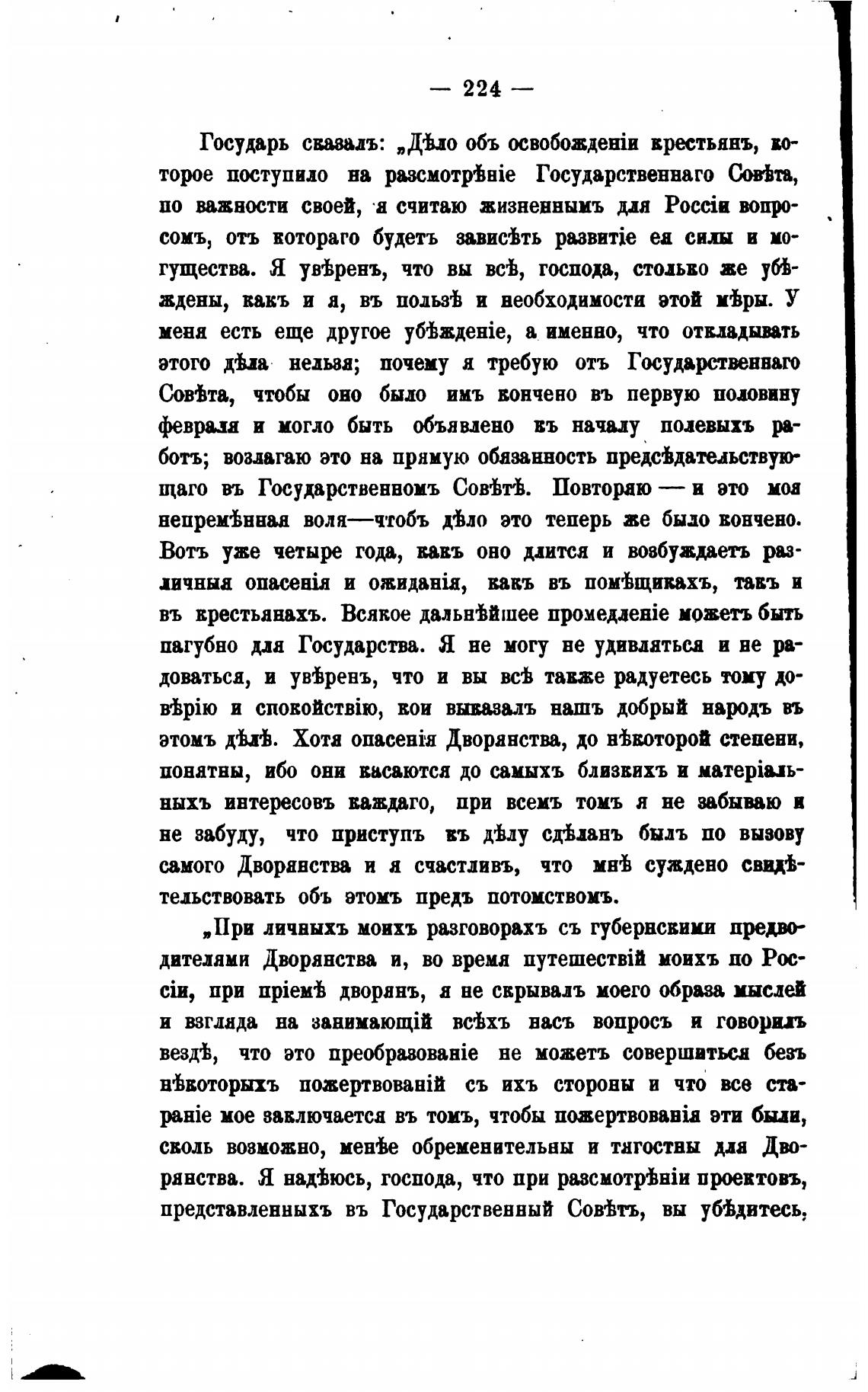 Государь свазадъ: „ДЫ объ врестьянъ, во-