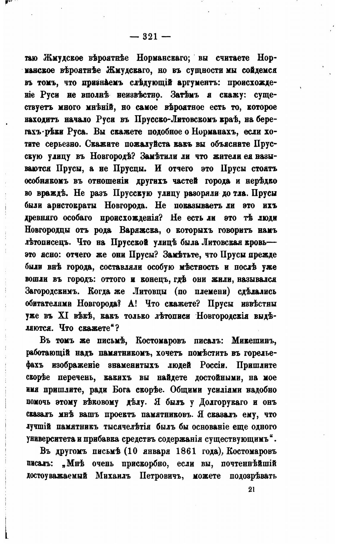 Въ другомъ письм± (10 января 1861 года), Костомаровъ