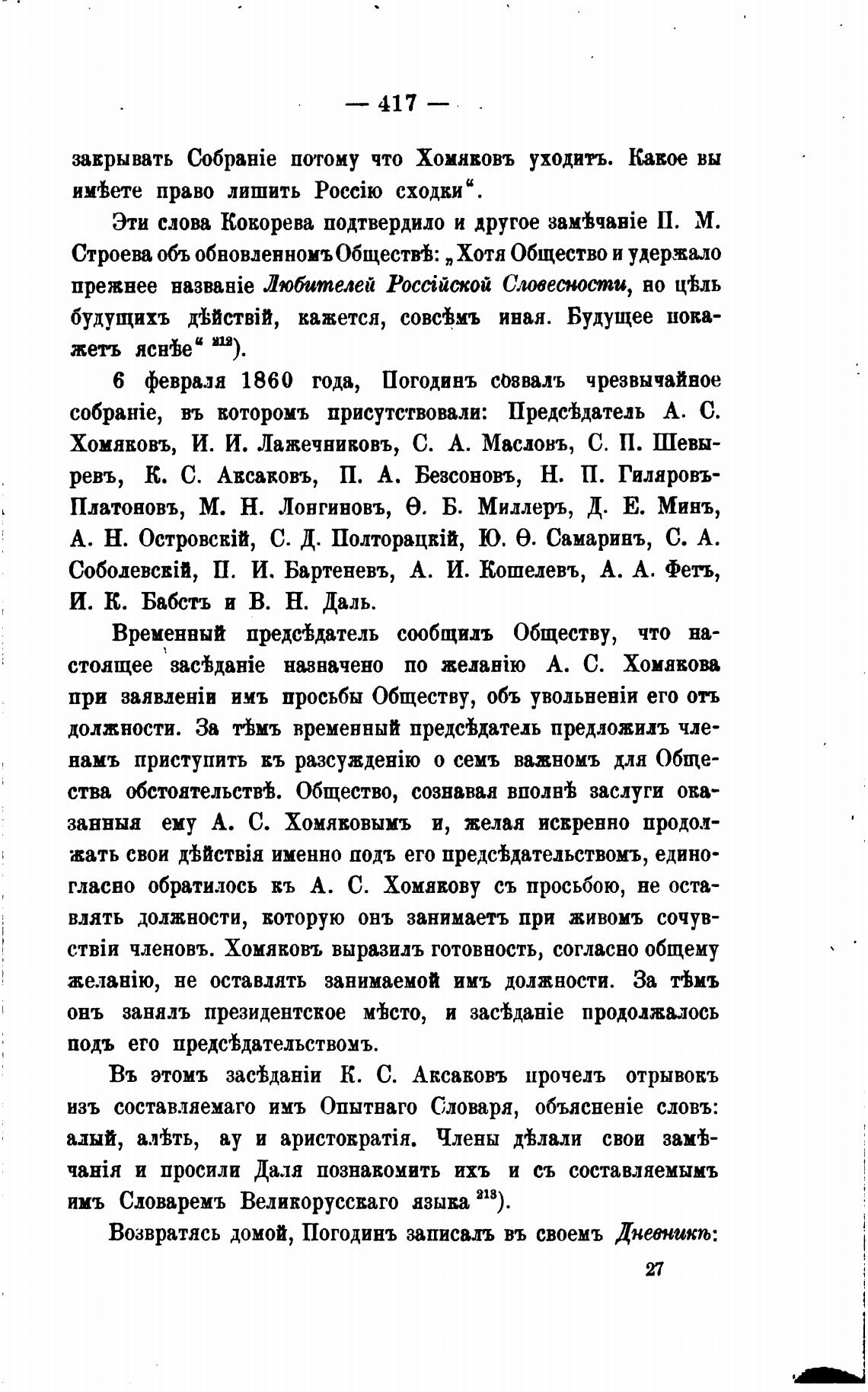 6 февраля 1860 года, Погодинъ созвалъ чрезвычайное