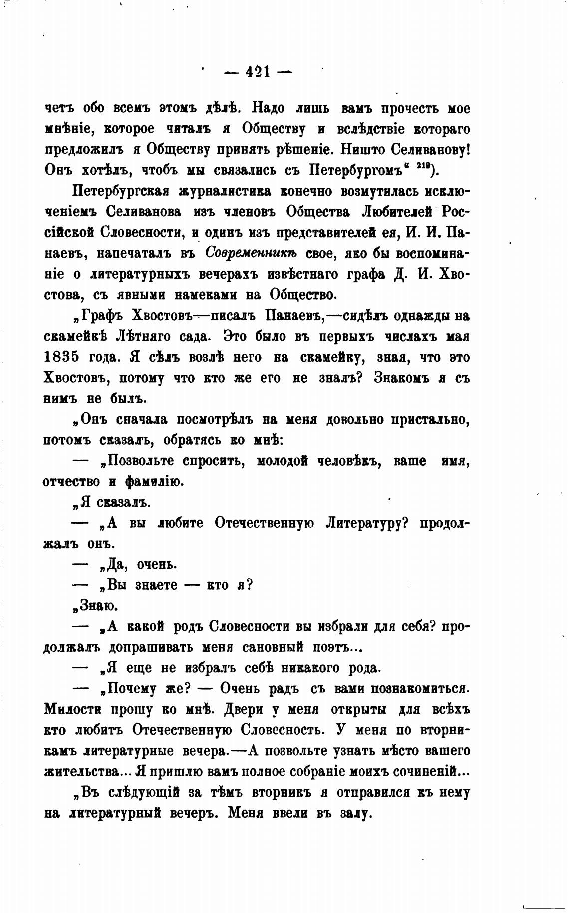 Графъ Хвостовъ—писалъ Панаевъ, —сидЬъ однажды на