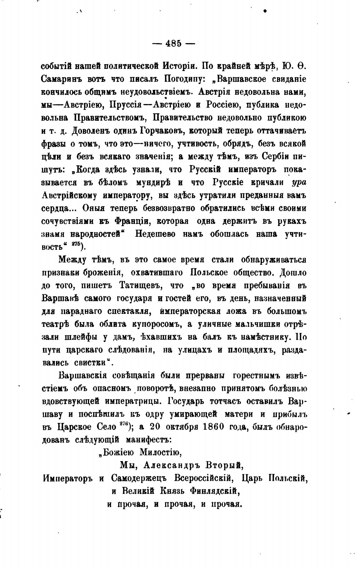 Самаринъ воть что писалъ Погодину: „Варшавское