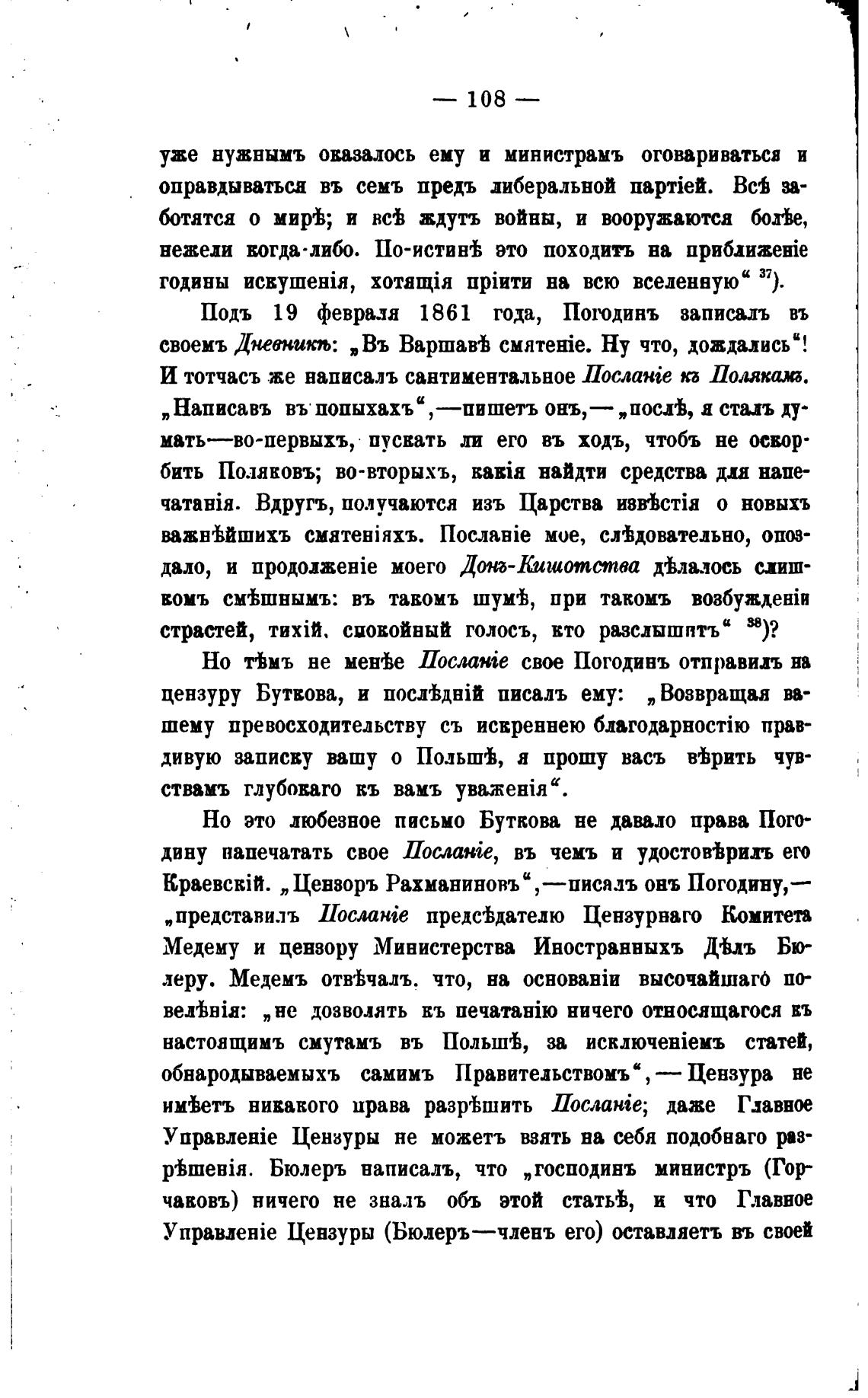 Подъ 19 февраля 1861 года, Погодинъ записалъ въ