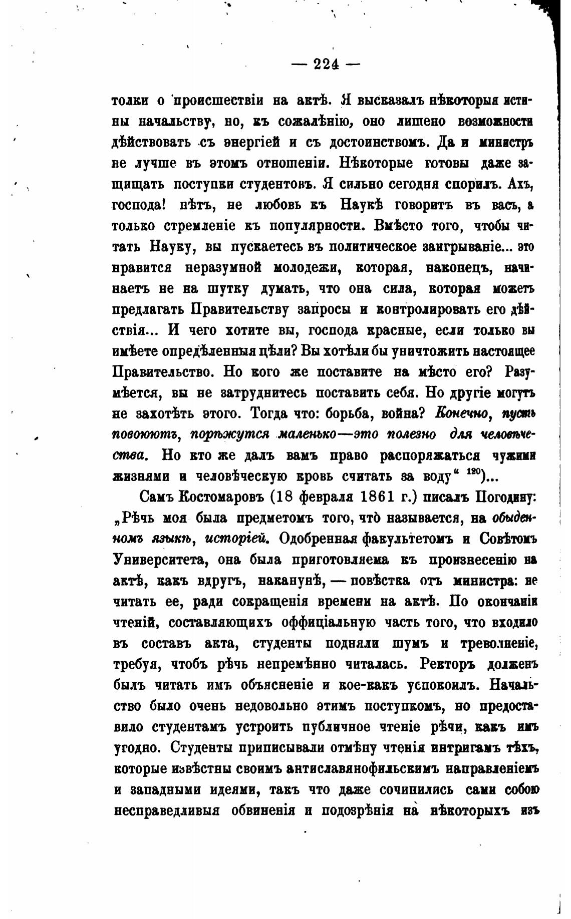 Самъ Костомаровъ (18 феврала 1861 г.) писал Погодину:
