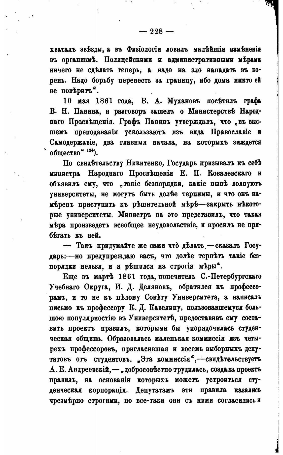 По свид%тедьству Никитенко, Государь призывалъ въ себ