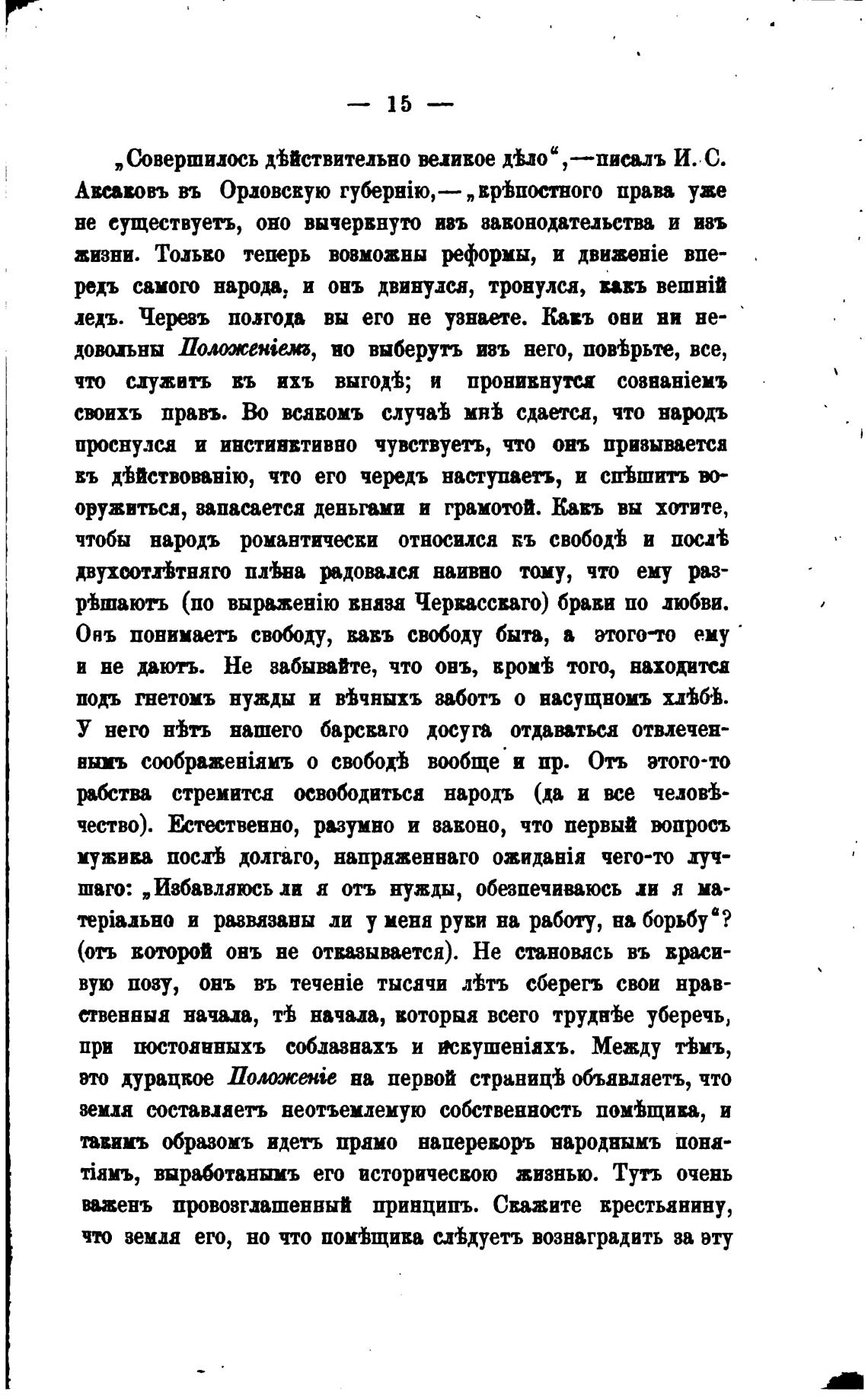 Онъ понимаеть свободу, вавъ свободу быта, а этогото ему