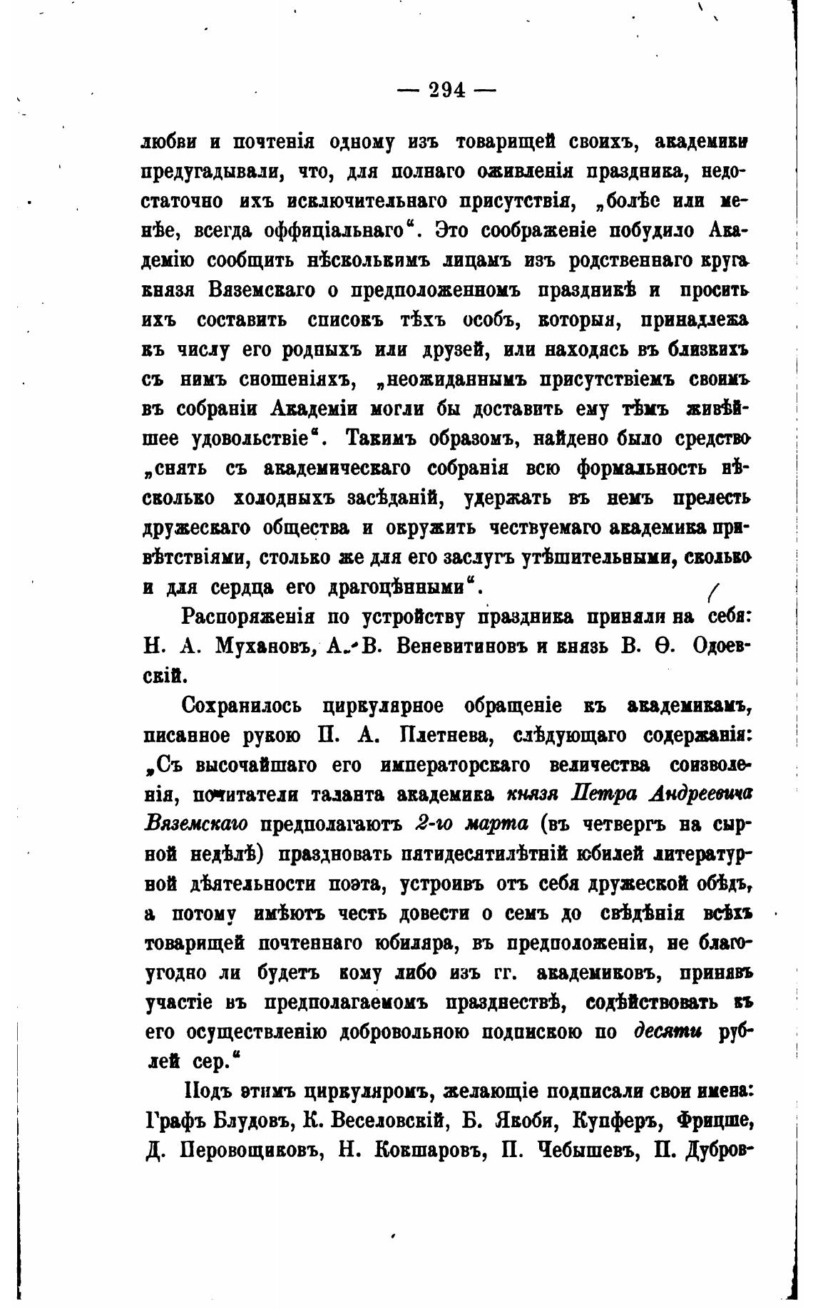 ввязл Вяземсваго о предположенномъ празднив'ђ и