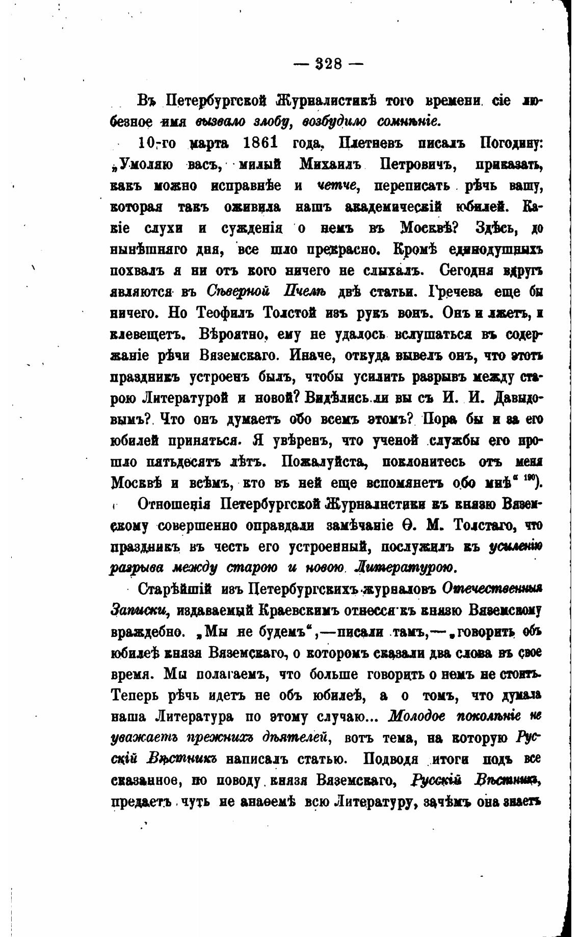 1030 ирта 1861 года, Плетневъ писахь Погодину: