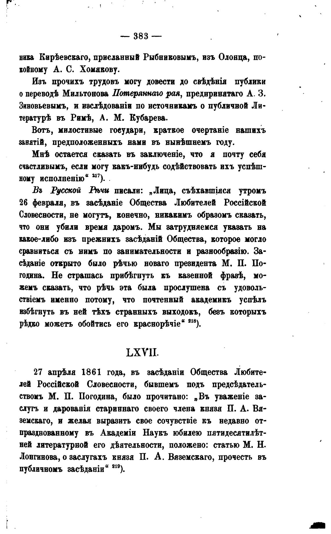 ствоиъ М. П. Погодина, было прочитано: „Въ YBazegie за-