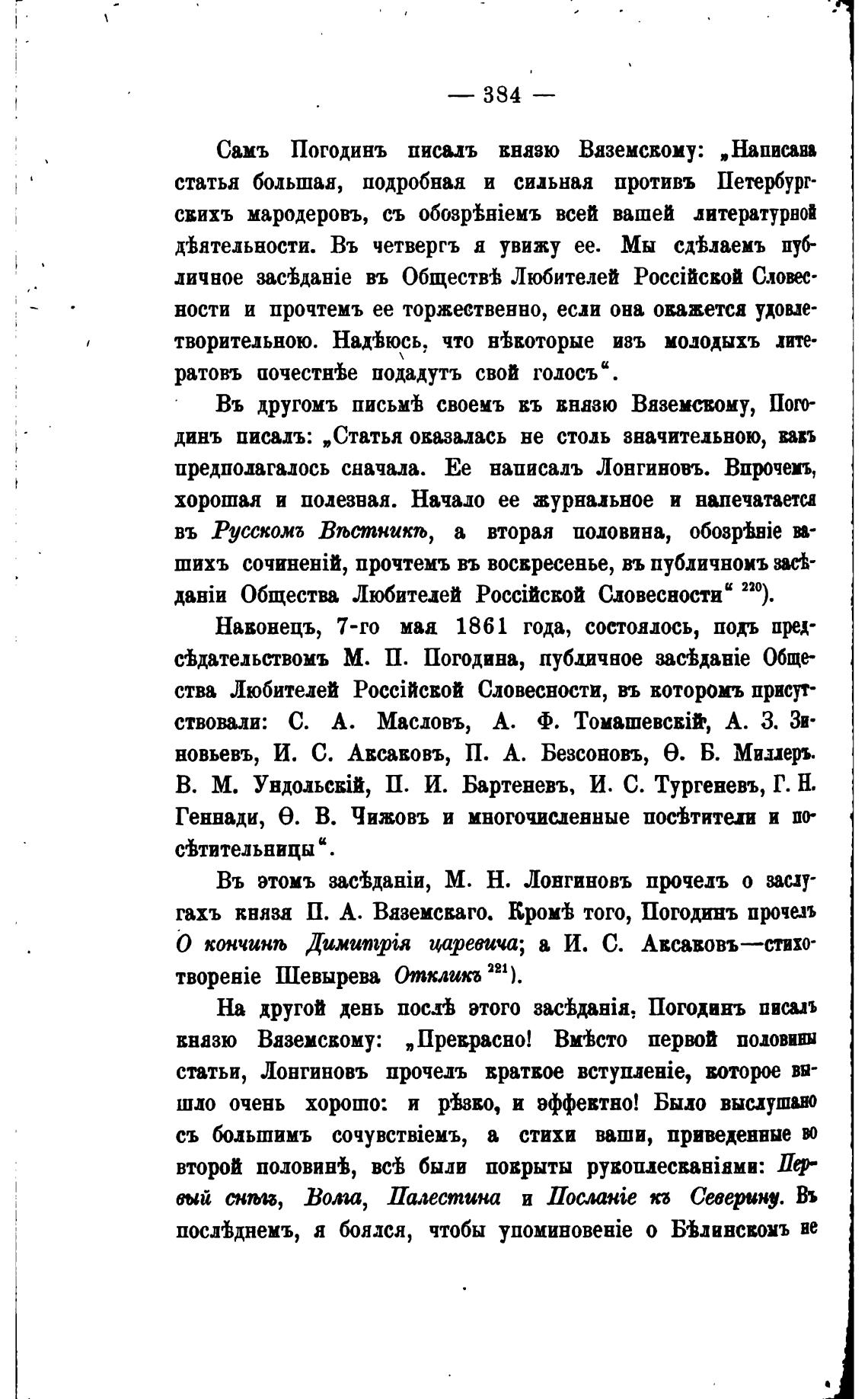 гахъ княза П. А. Ваземсваго. Крой того, Погодинъ прочел