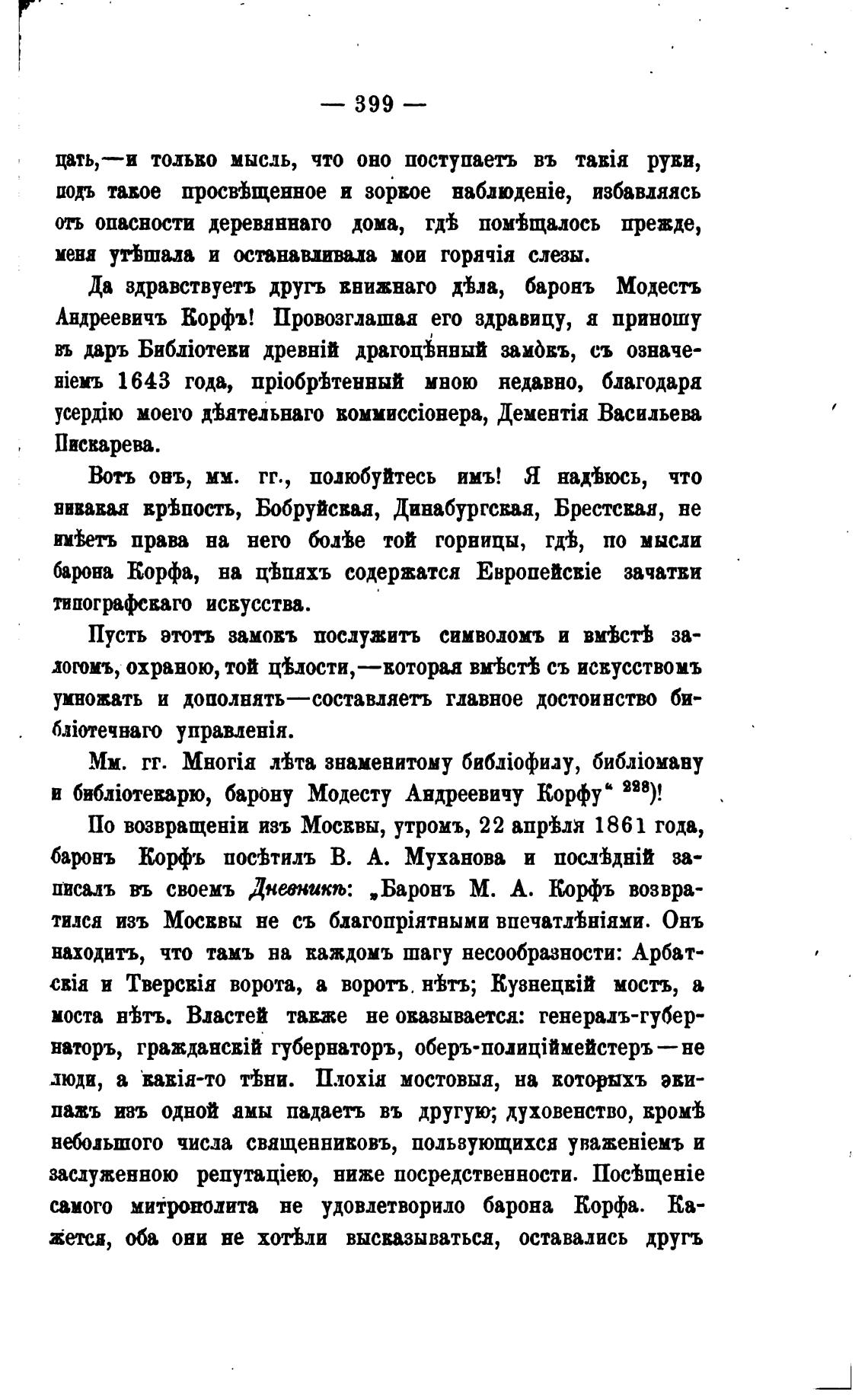 писалъ вь своемъ Днееникљ: , Баронъ М. А. Корфъ возвра-