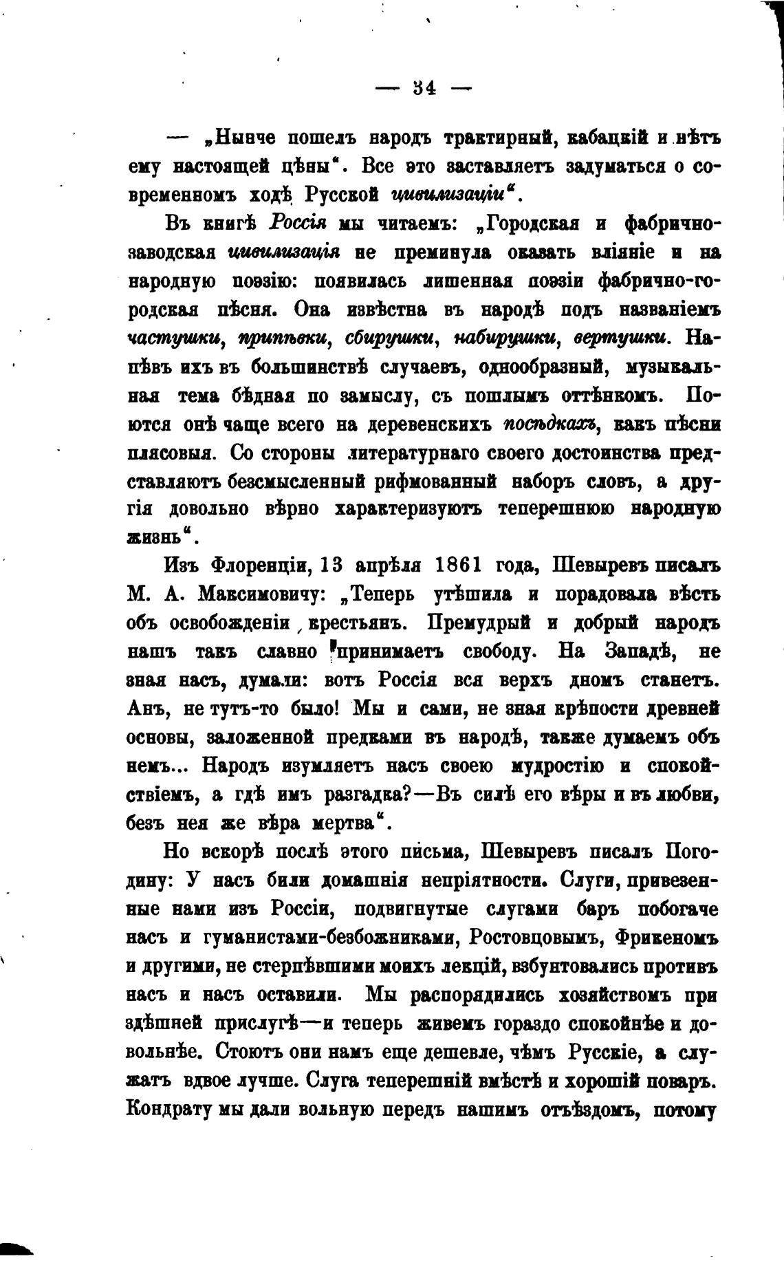 Изъ 13 апргЬла 1861 года, Шевыревъ писыъ