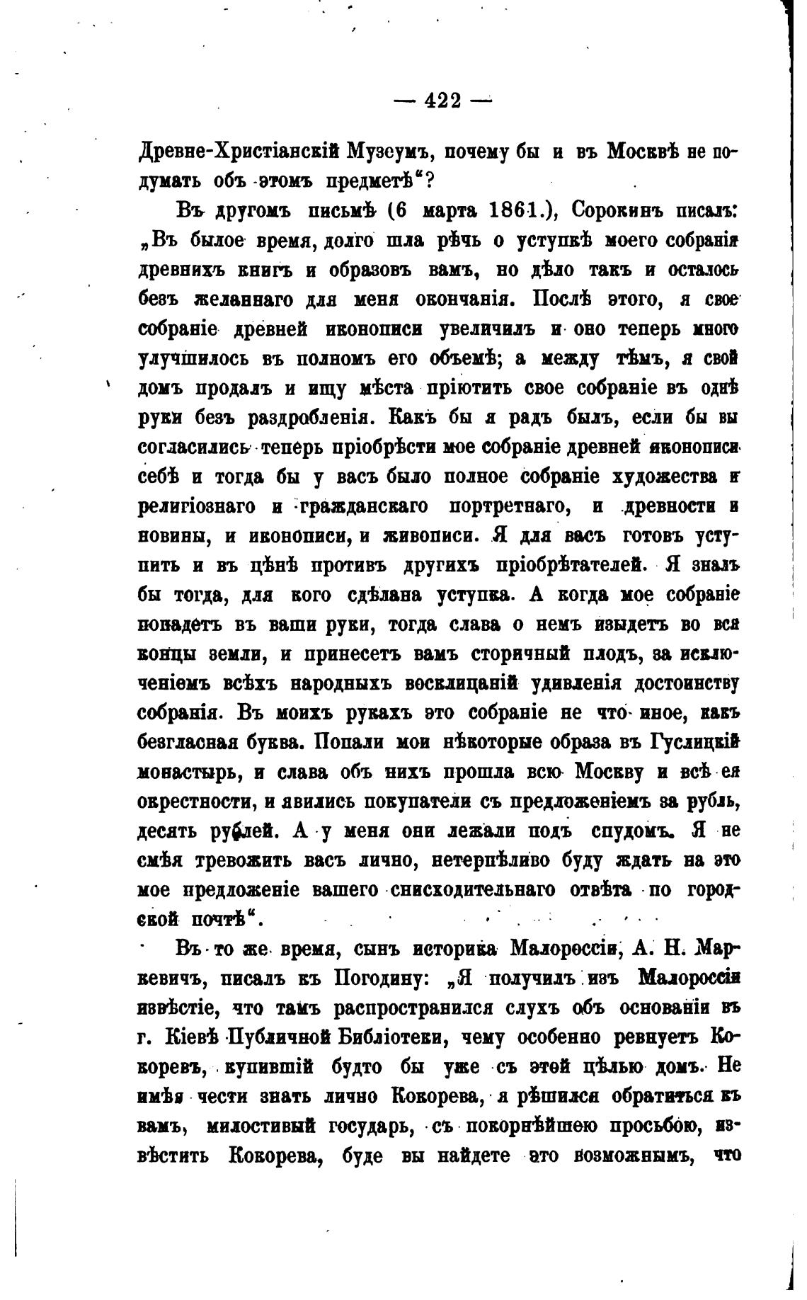 Въ другомъ письмЬ (6 марта 1861.), Сорокинъ писал: