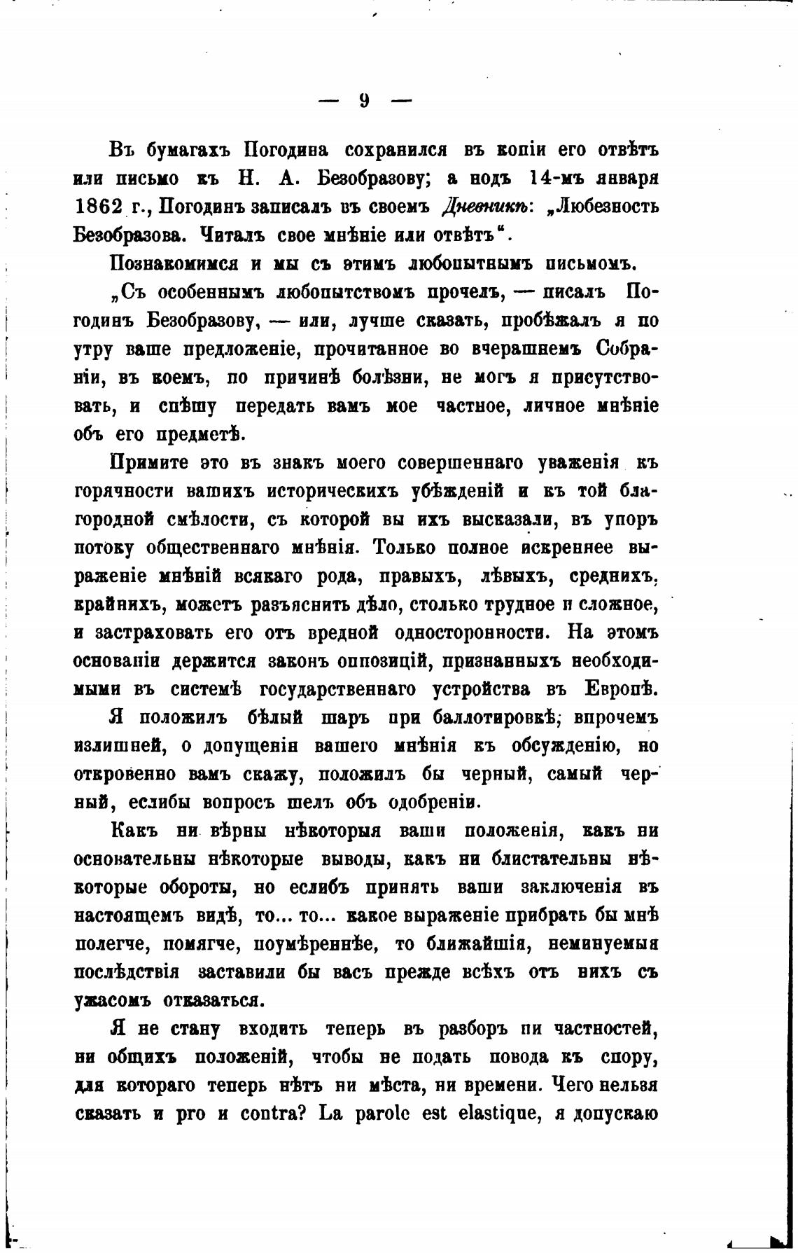 Въ бумагахъ Погодина сохранился въ его отвђтъ