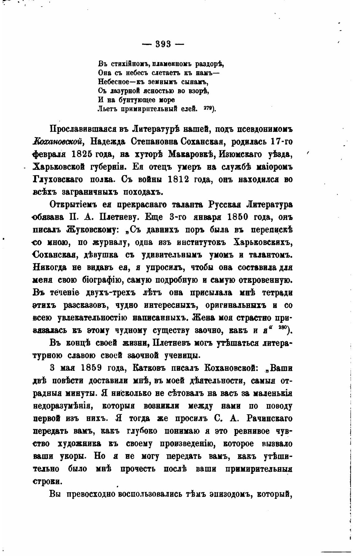 З мая 1859 года, Катвовъ писалъ Кохановсвой: „Ваши
