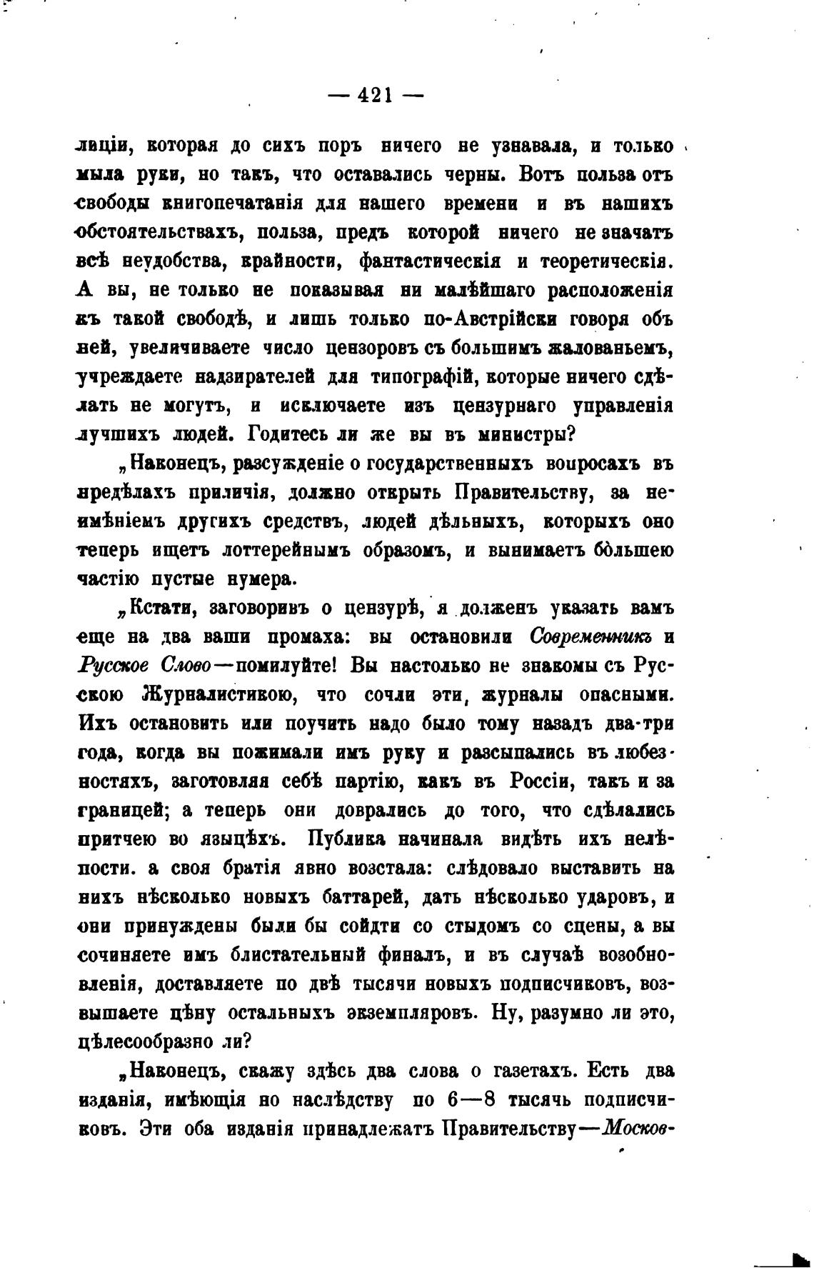 Кстати, заговоривъ о цензуреЬ, а долженъ ува.зать вамъ