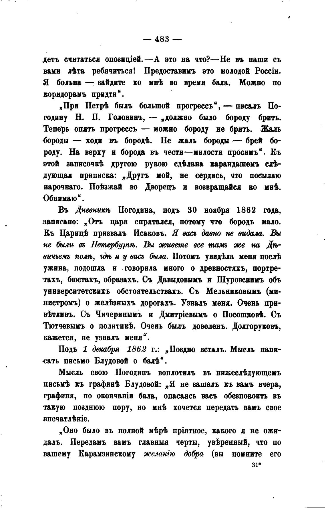Въ Днтникљ Погодина, подъ 30 ноября 1862 года,