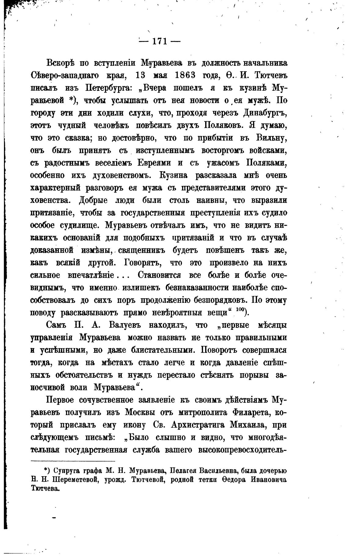 * ) Супруга графа М. Н. Муравьева, Пелагея Васильевна, была дочерью