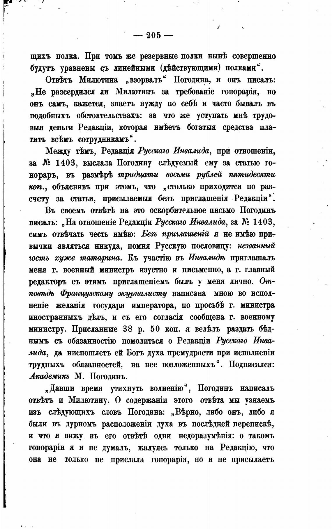 „Давши время утихнуть , Погодинъ написалъ