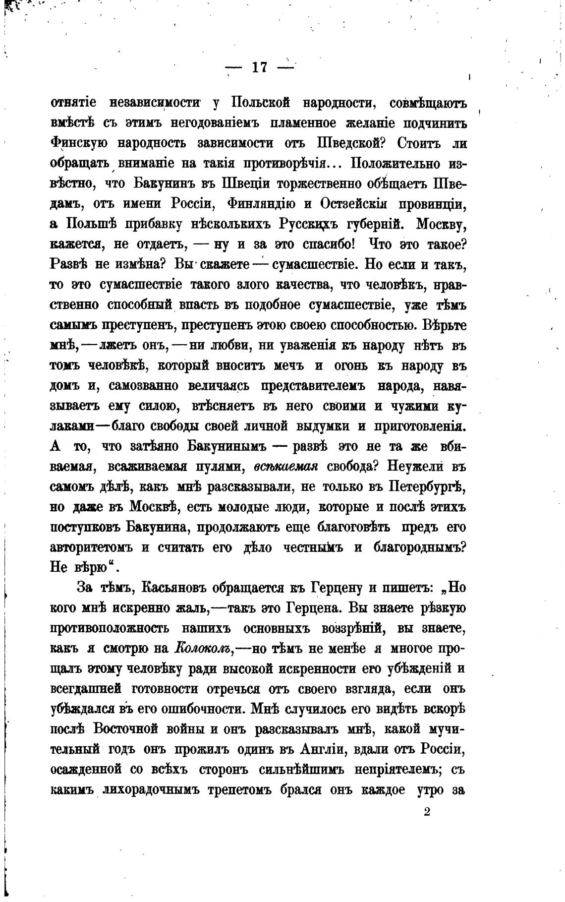 За тьмъ, Касьановъ обращается въ Герцену и пишетъ: „Но
