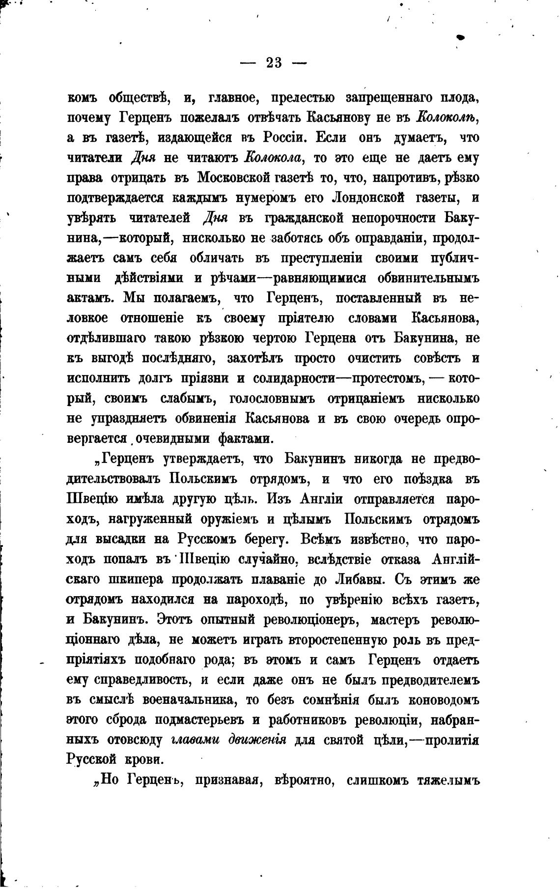 „Герценъ утверждаетъ, что Бакунинъ никогда не предво-