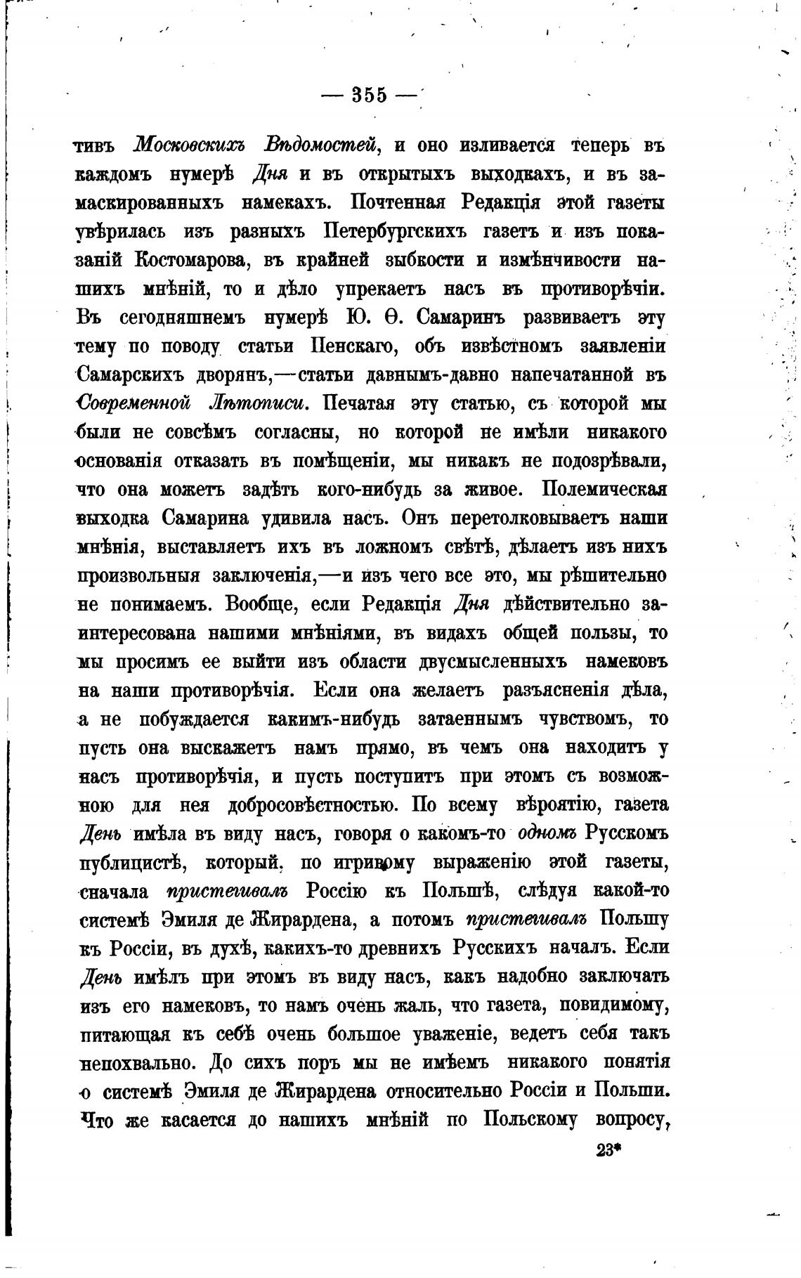 выходка Самарина удивила насъ. Онъ перетолковываеть наши