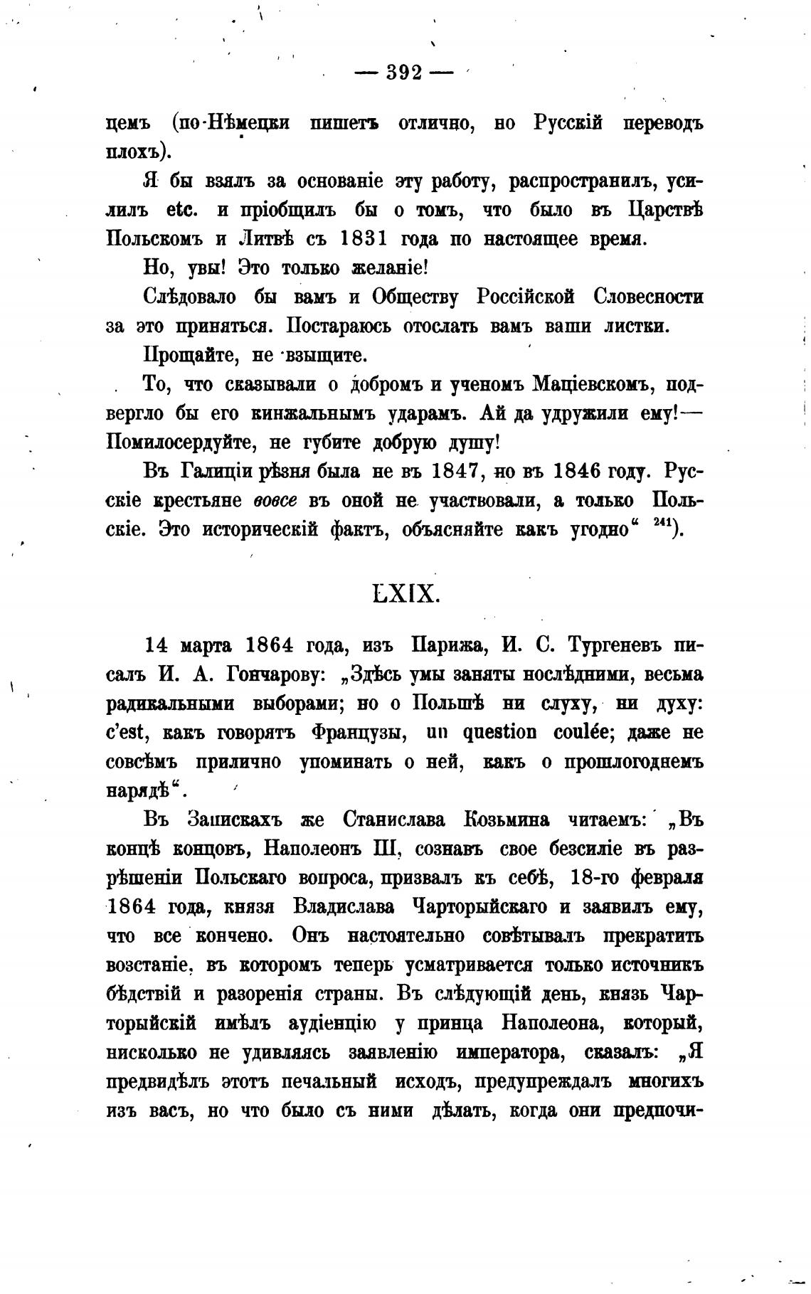 14 марта 1864 года, изъ Парижа, И. С. Тургеневъ пи-