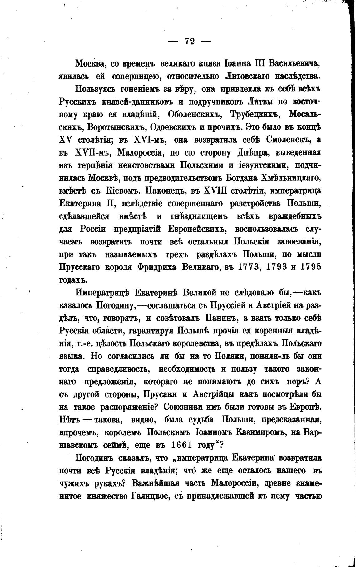Погодинъ свазалъ, что „императрица Екатерина возвратила