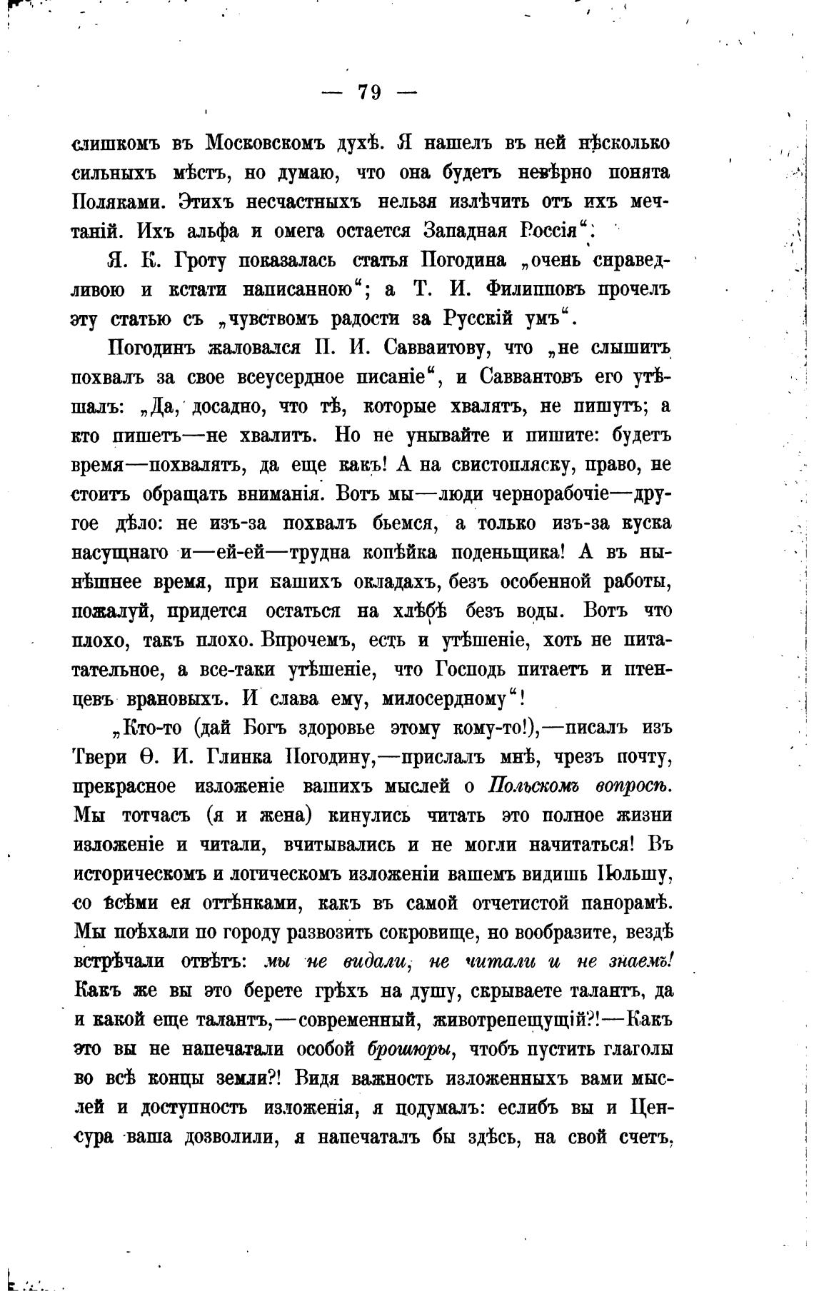 Погодинъ жаловался П. И. Савваитву, что „не слышитъ