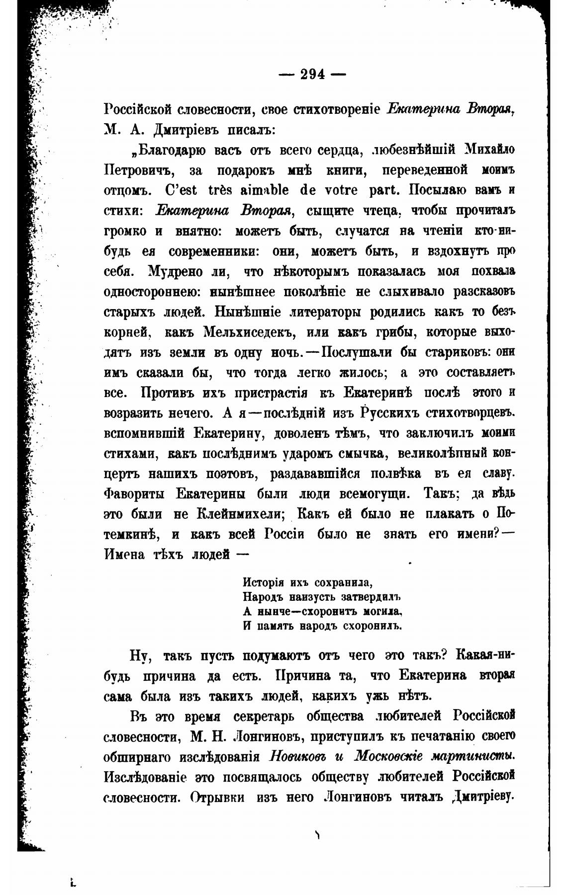 словесности, свое Екатерина Вторая,