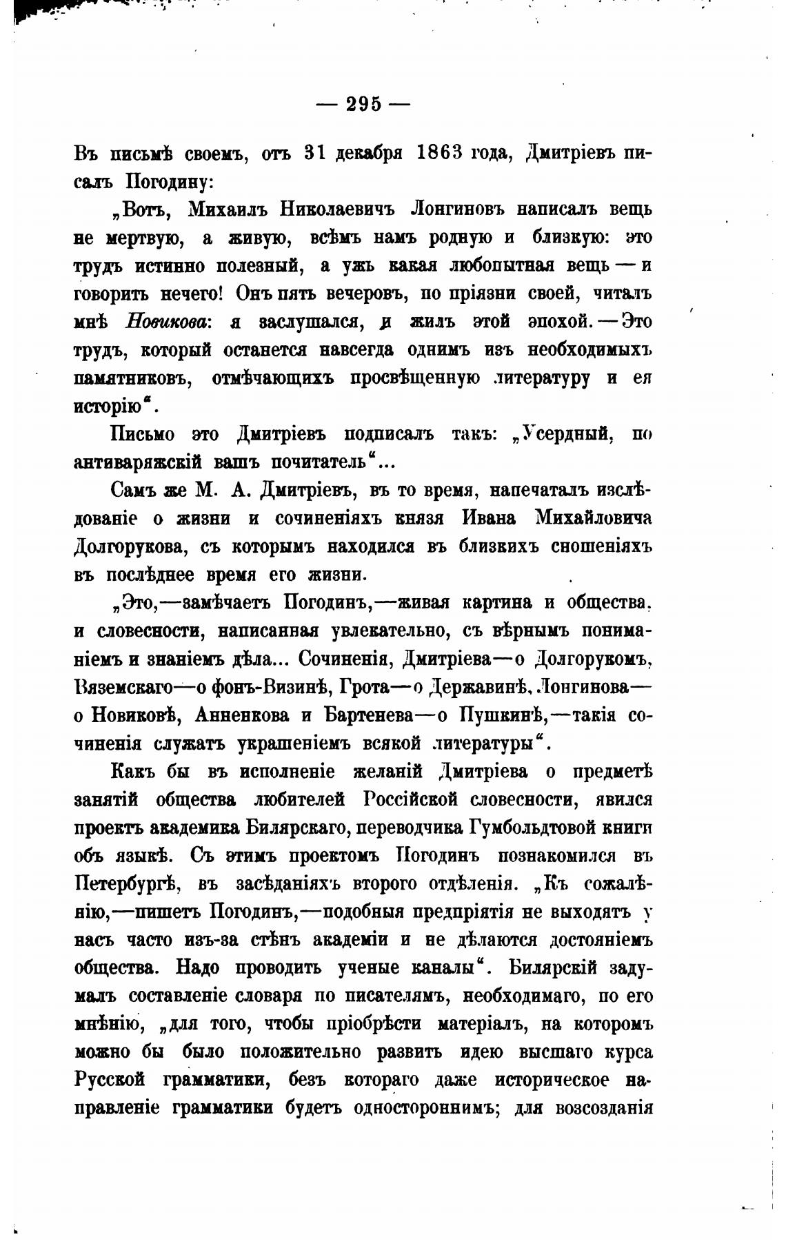 объ язык%. Съ этимъ проектомъ Погодинъ познакомилсл въ