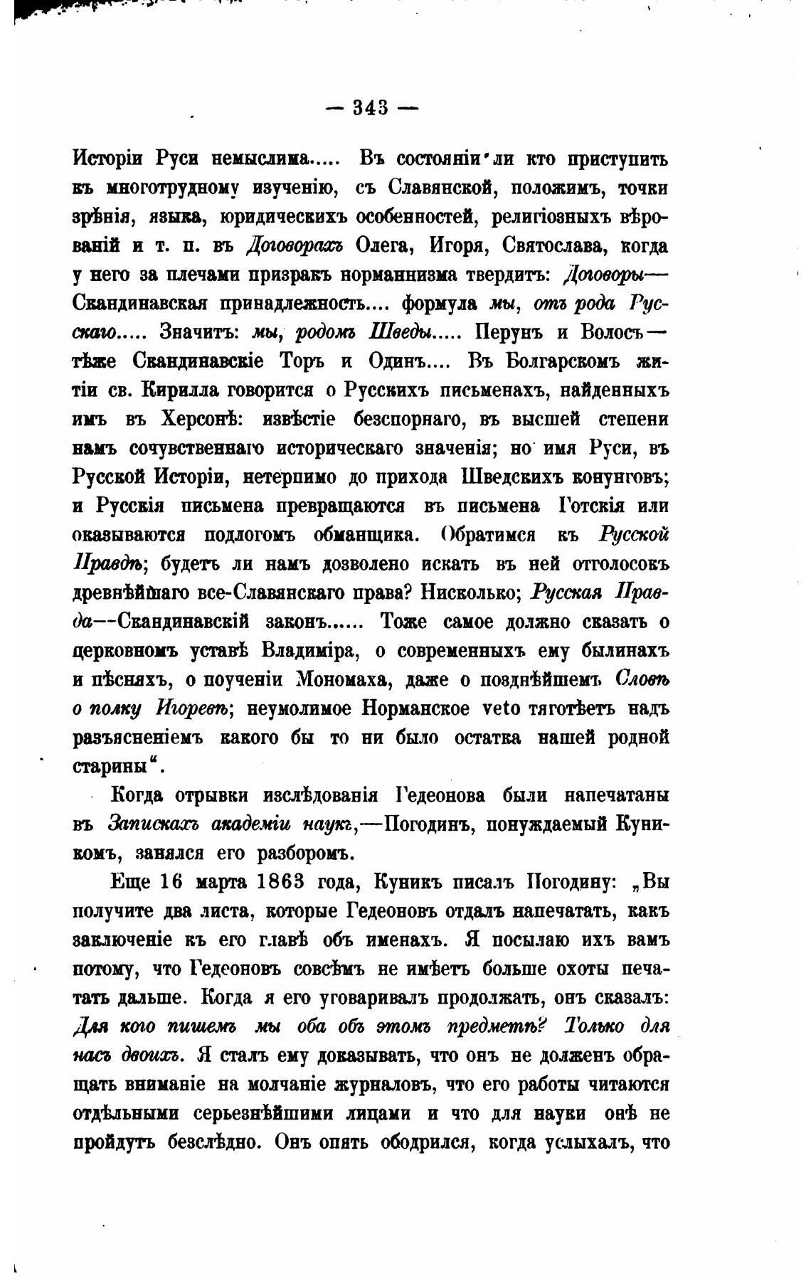Еще 16 марта 1863 года, Куникъ писалъ Погодину: „Вы