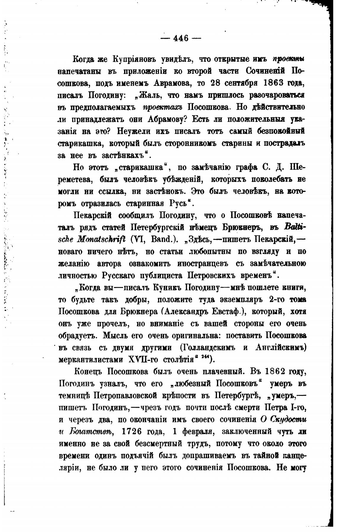 смщилъ Погодину, что о Посошвов•Ь напеча-
