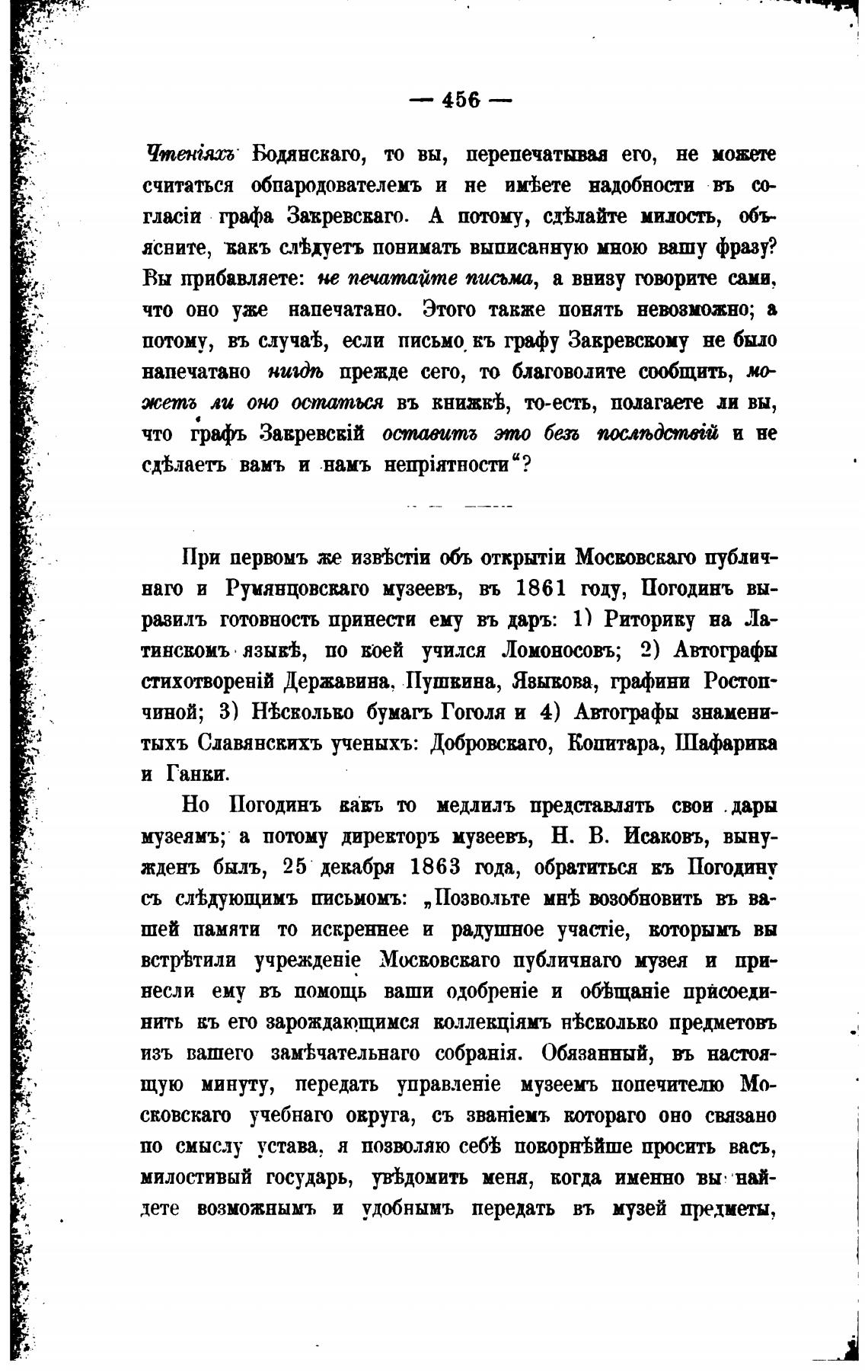 наго и Румянцовскаго музеевъ, въ 1861 оду, Погодинъ вы-