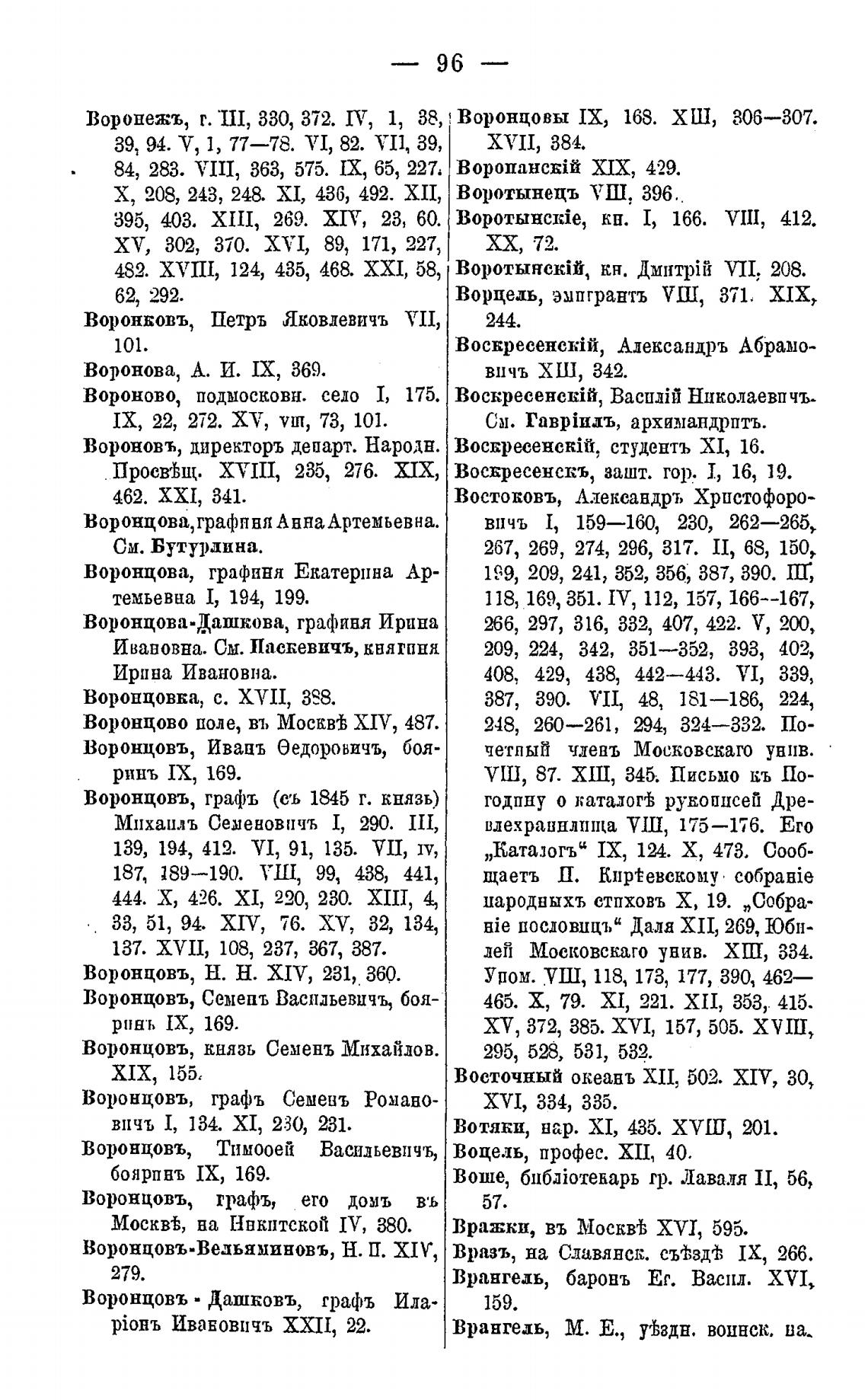 Воропежъ, г. Ш, 330, 372. ш, 1, 38, ' Воронцовы IX, 168. ХШ, 306—307.